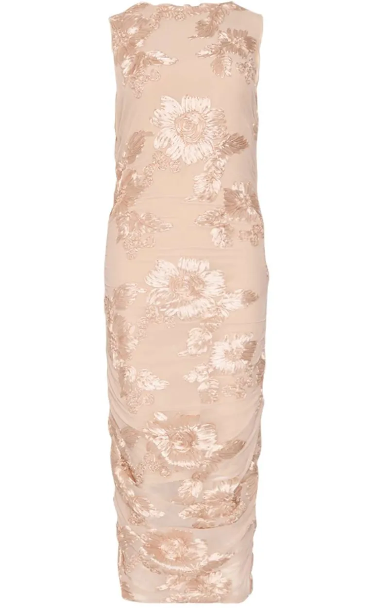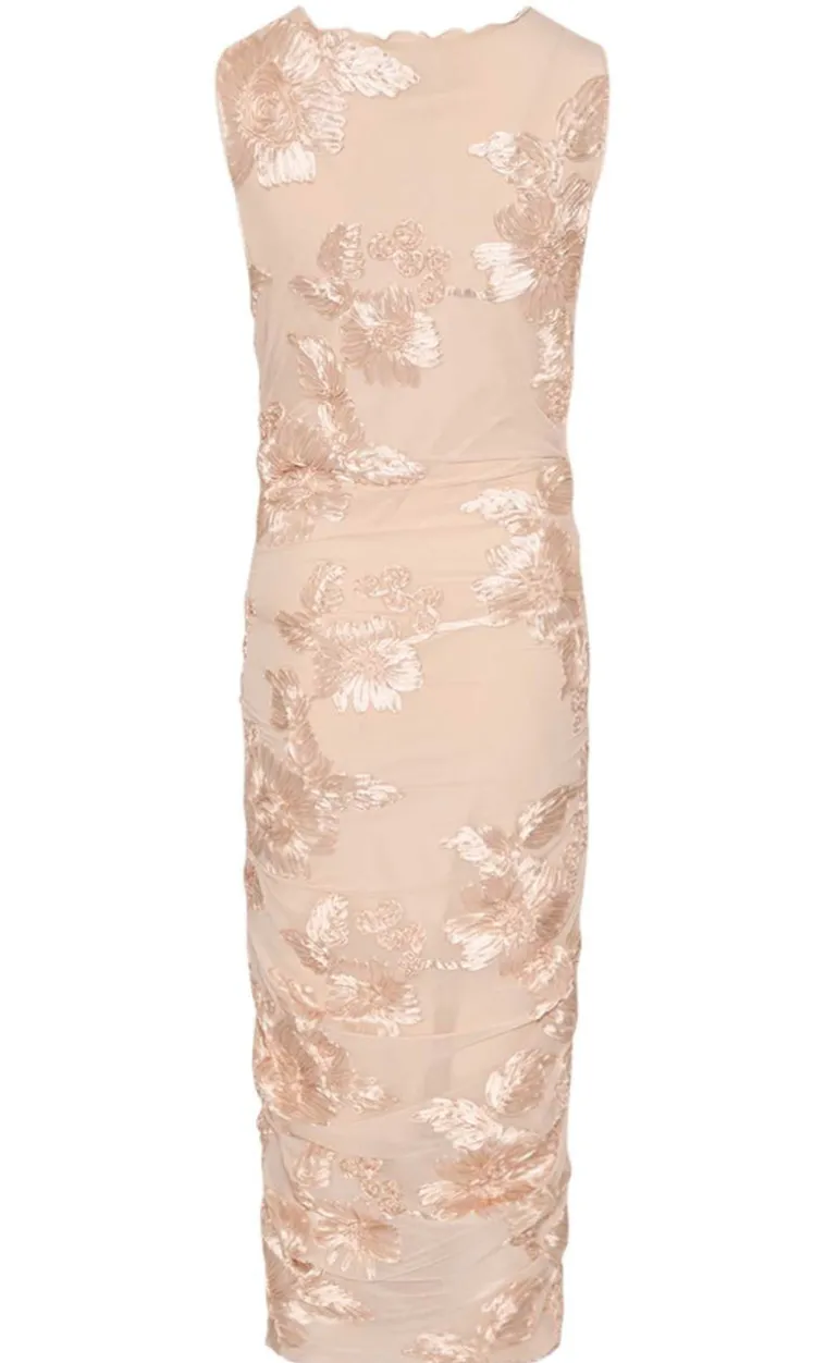 Kjolen er ærmeløs og har et tætsiddende fit.