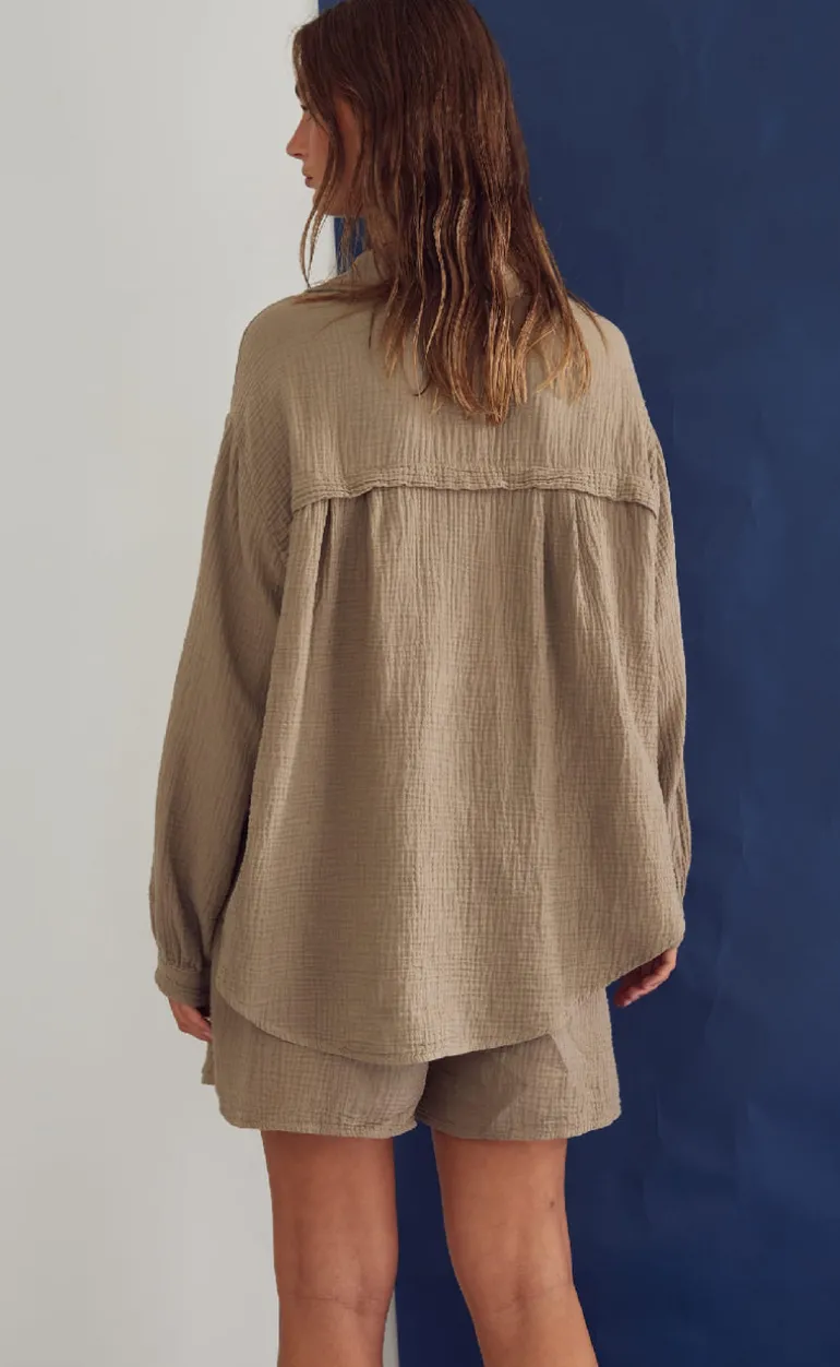 Oversize skjorte fra Noella i brun, i en strukturet kvalitet.