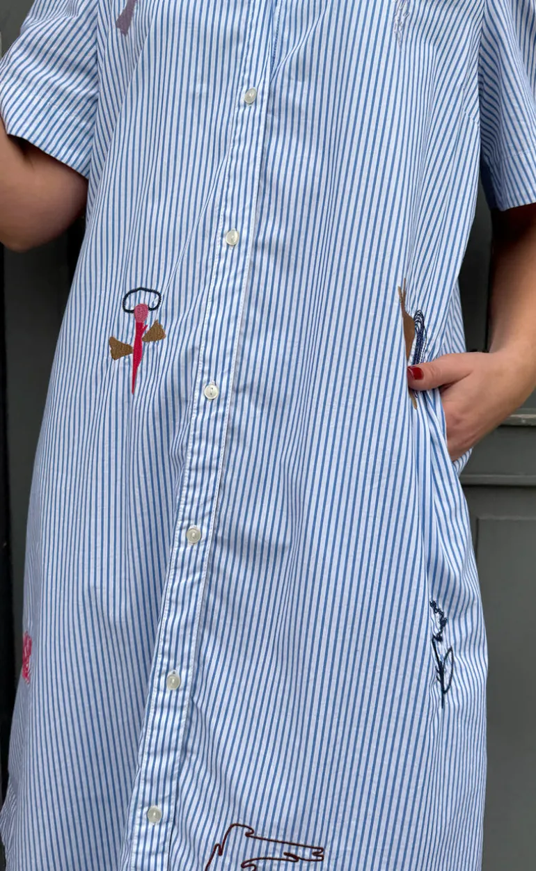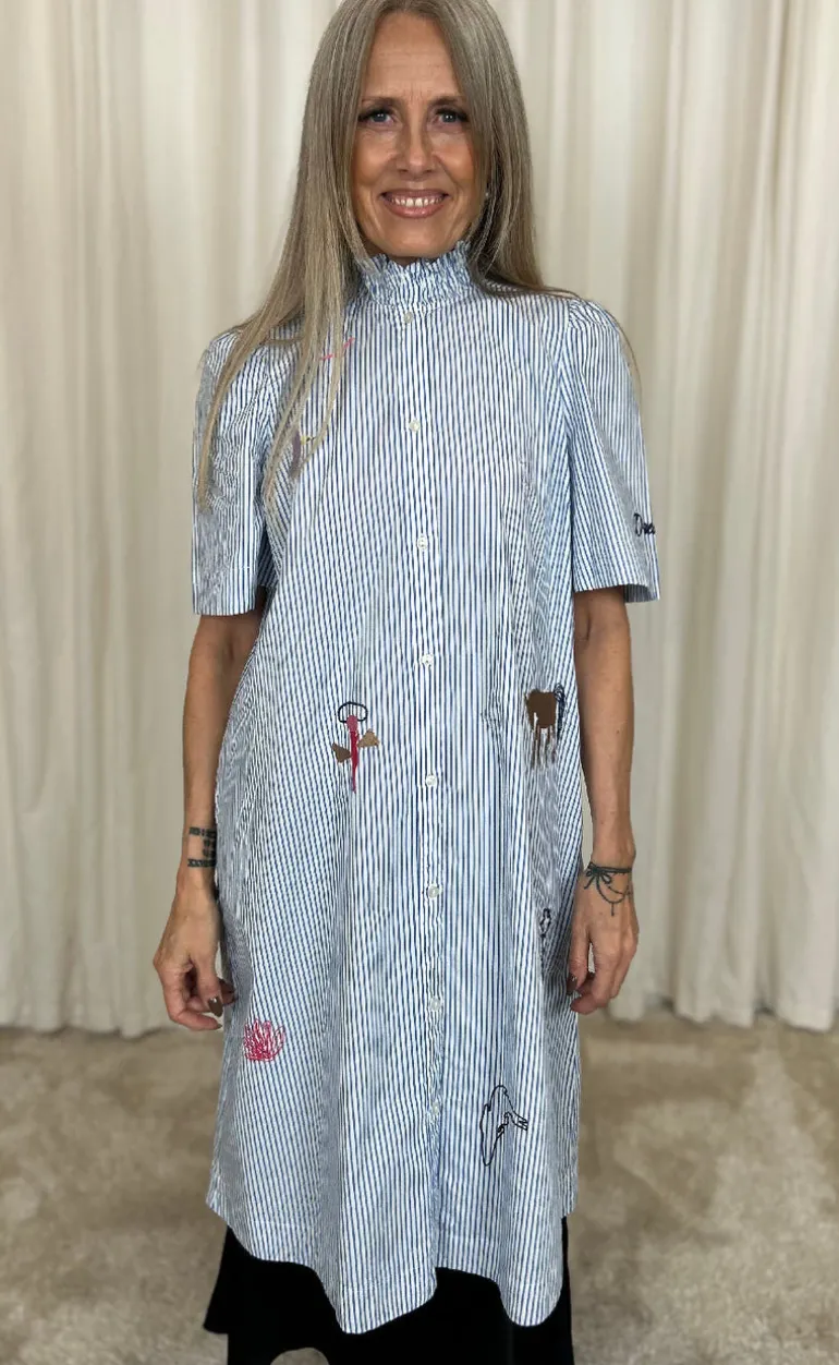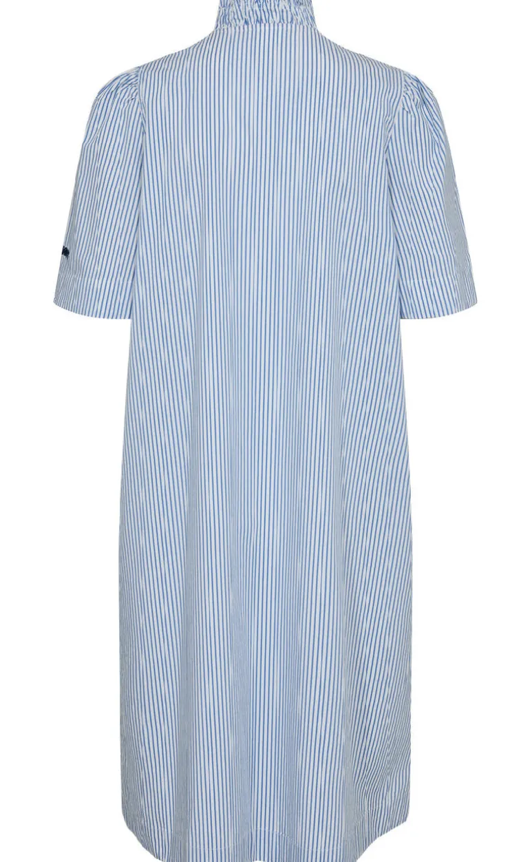 Skjorte kjole fra Nümph i et blå og hvid stribet print.