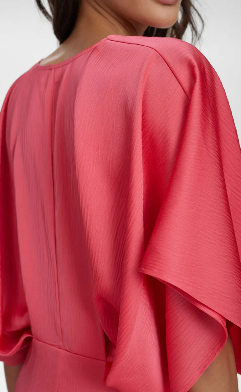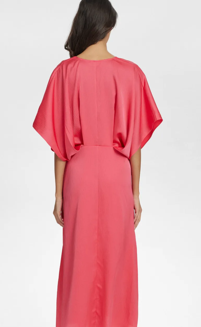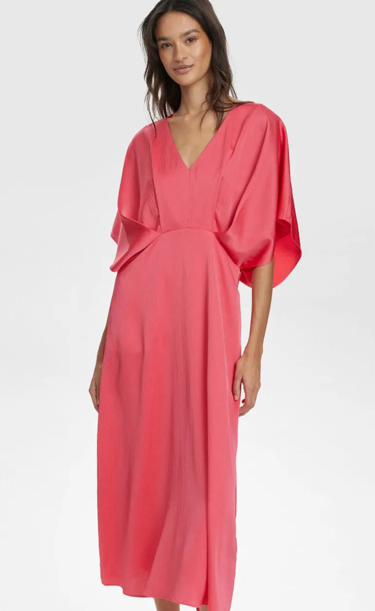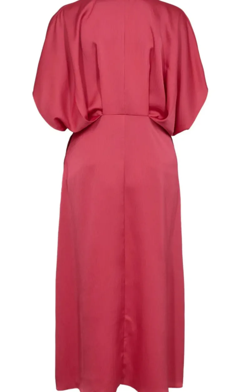 Feminin kjole fra Nümph i lyserød, med e v-hals samt voloumiøse ærmer.