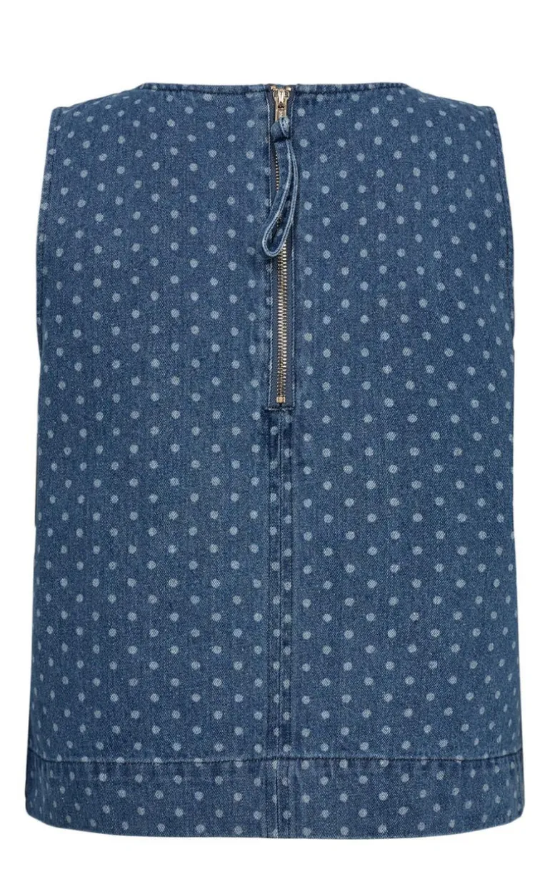 Denne top har en lynlås, og ingen ærmer.