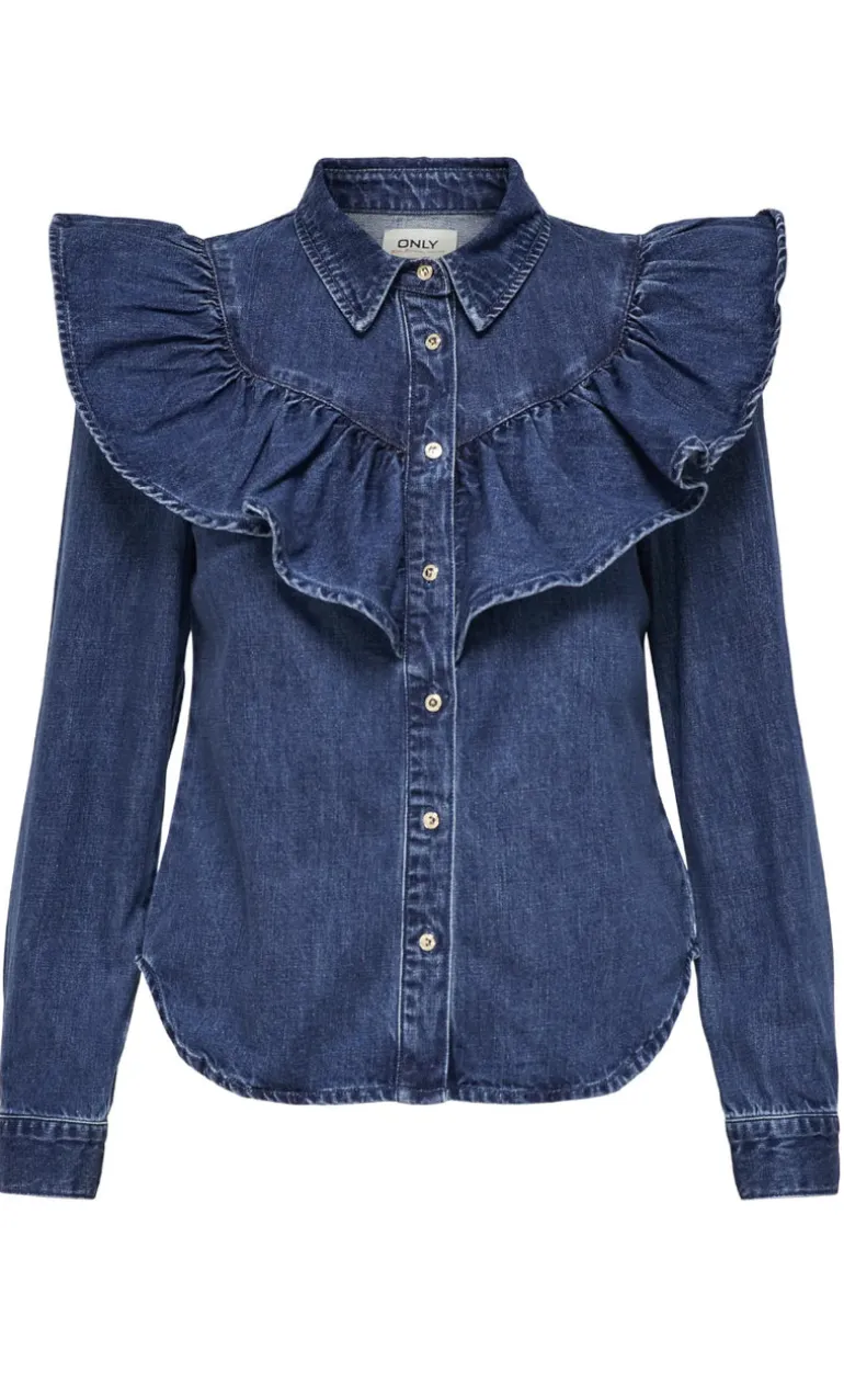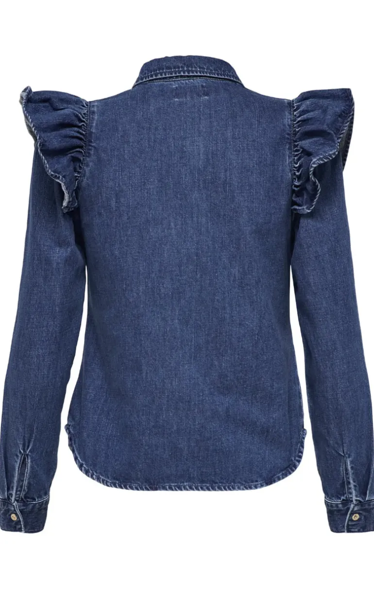 Style nummer: 15297988-ONLINDIGO LS FRILL DNM SHIRT QYT NOOS