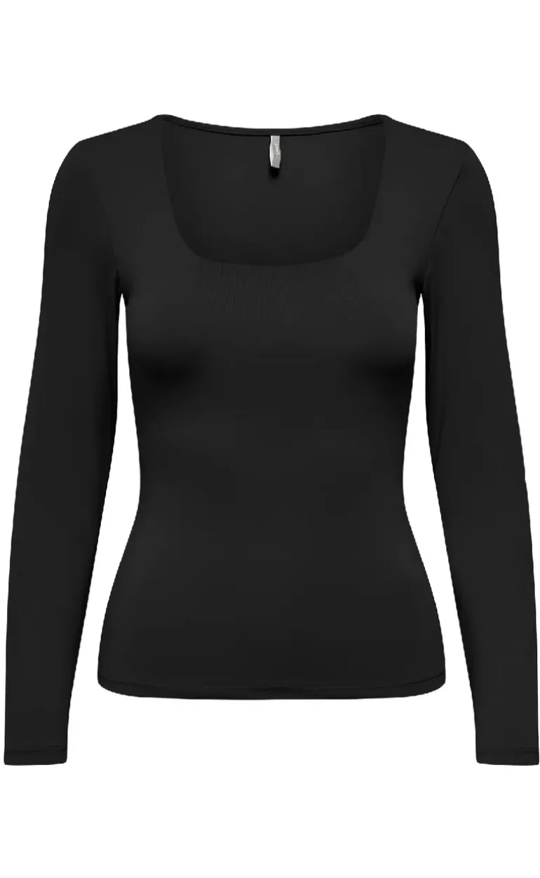 Basic, langærmet bluse fra ONLY i sort fremstillet i et strækbart materiale.