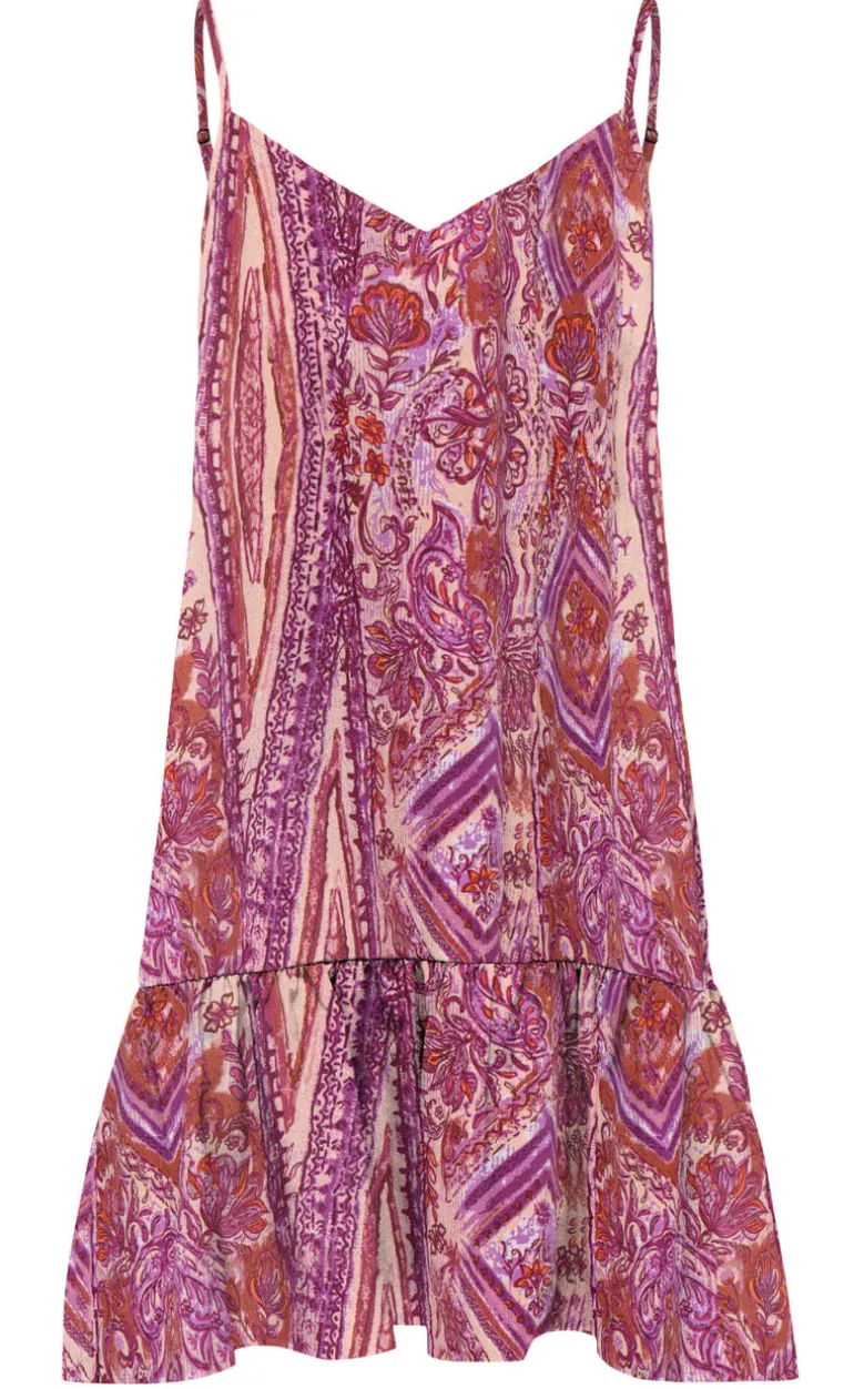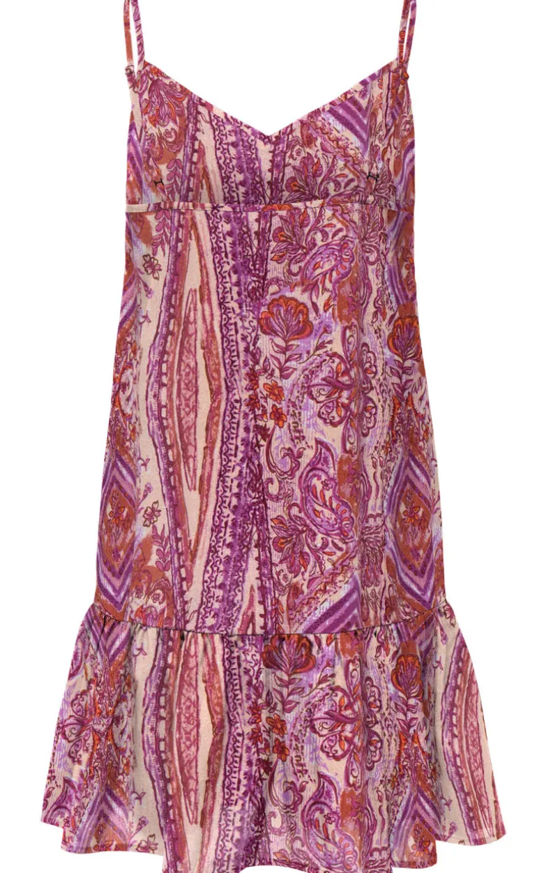 Kjolen har tynde stropper og en fin skæringer forneden.