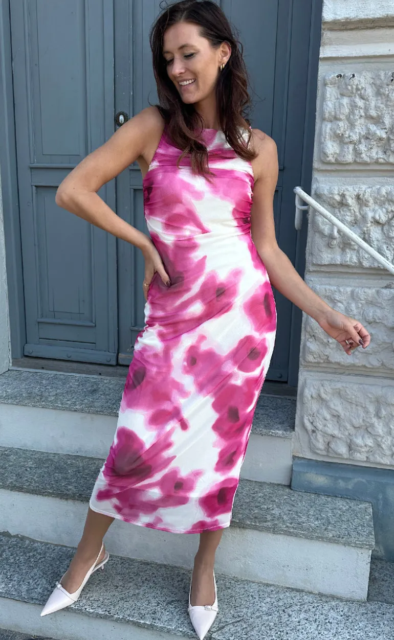 Kjolen har et tætsiddende fit, er ærmeløs og er fremstillet i en lækker mesh kvalitet.
