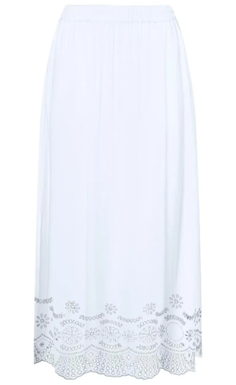 Sød lang nederdel i hvid, med blonder i bunden.