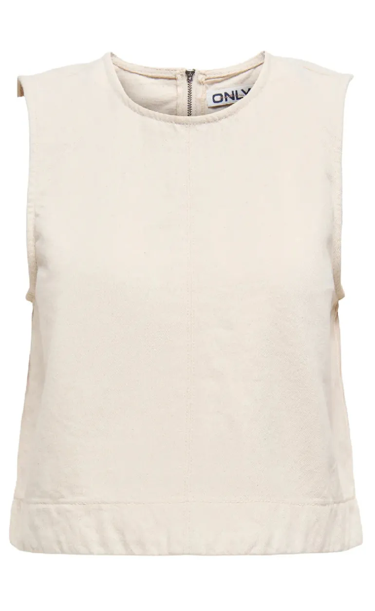 Toppen er ærmeløs og lukkes i nakken med lynlås.