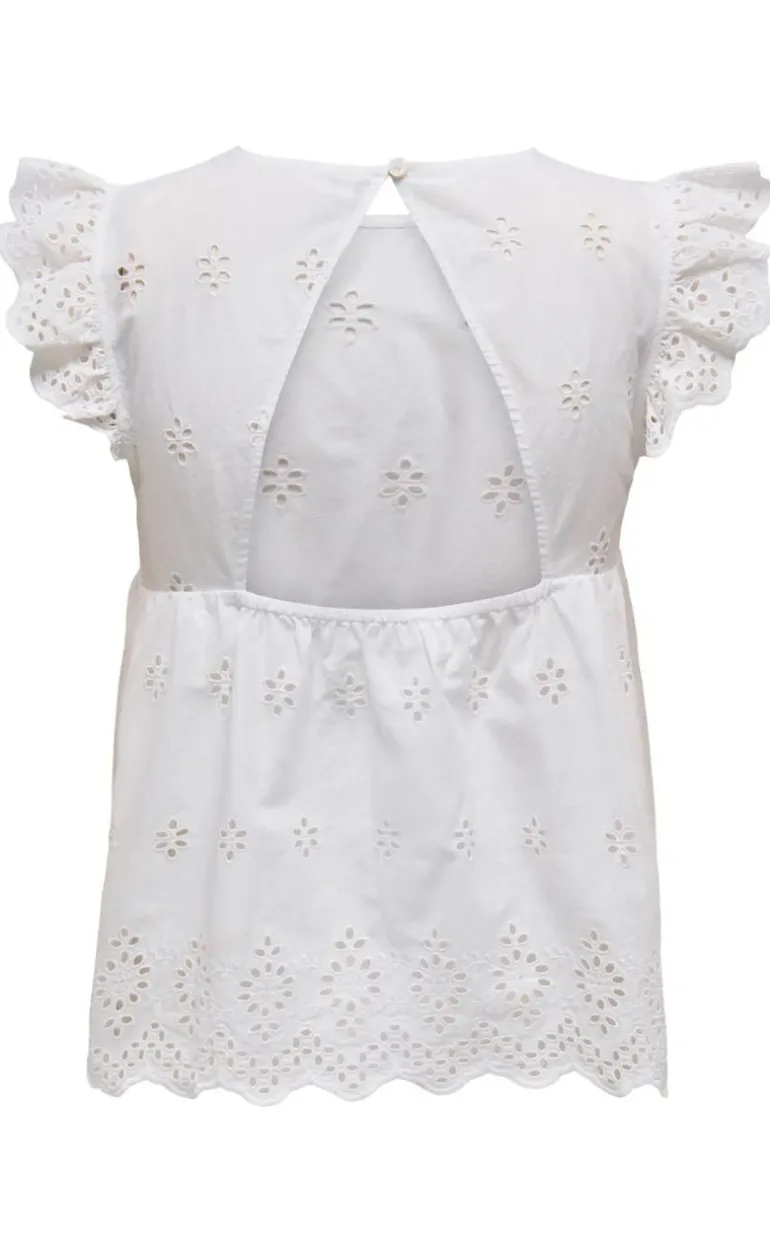 Den fineste blonde top i hvid med smukke detaljer og udskæring på ryggen