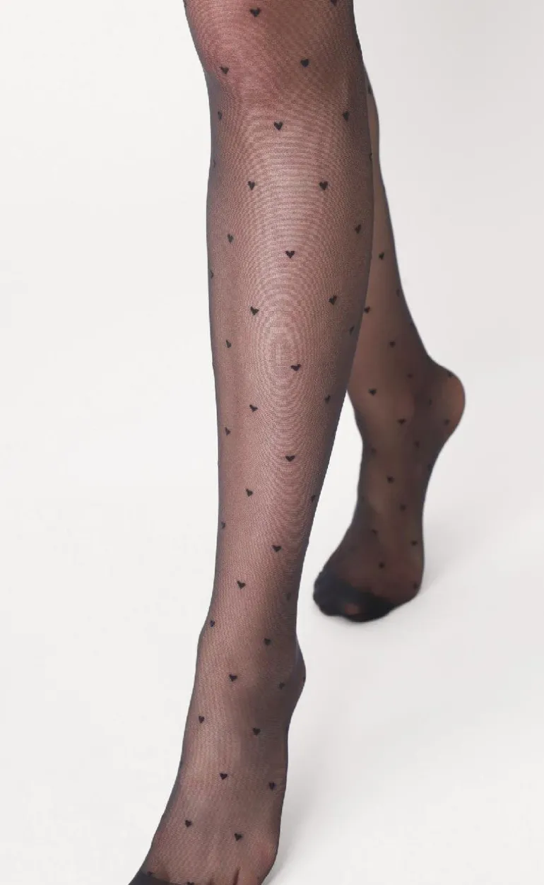 Lækre og behagelige strømpebukser fra det velkendte mærke, Oroblu. De kommer i en sort nuance, med små sorte hjerter som danner et flot mønster.
