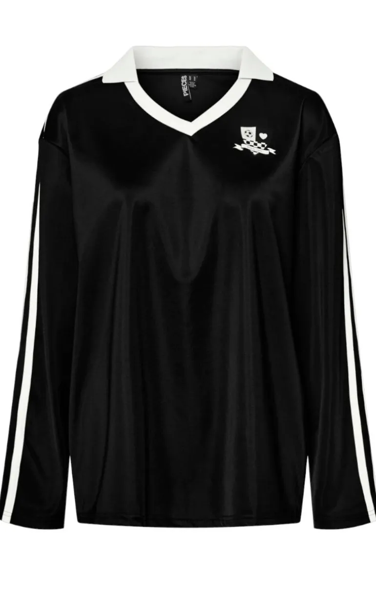 Langærmet bluse fra Pieces i sort, med flotte hvide detaljer.