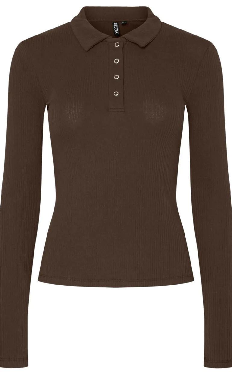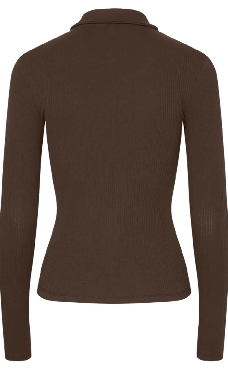 Blusen har lange ærmer, et tætsiddende fit samt fremstillet i en ribbet kvaltet.