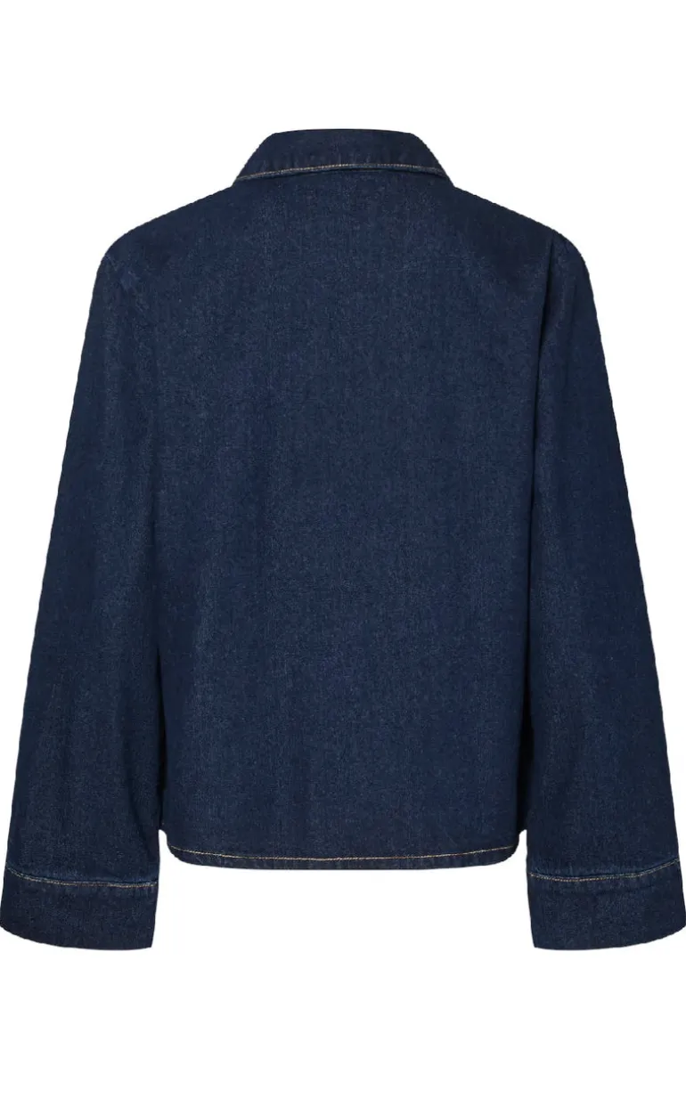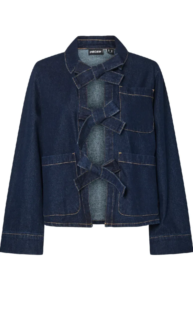 Denim, bundebluse fra Pieces i en mørkeblå farve.