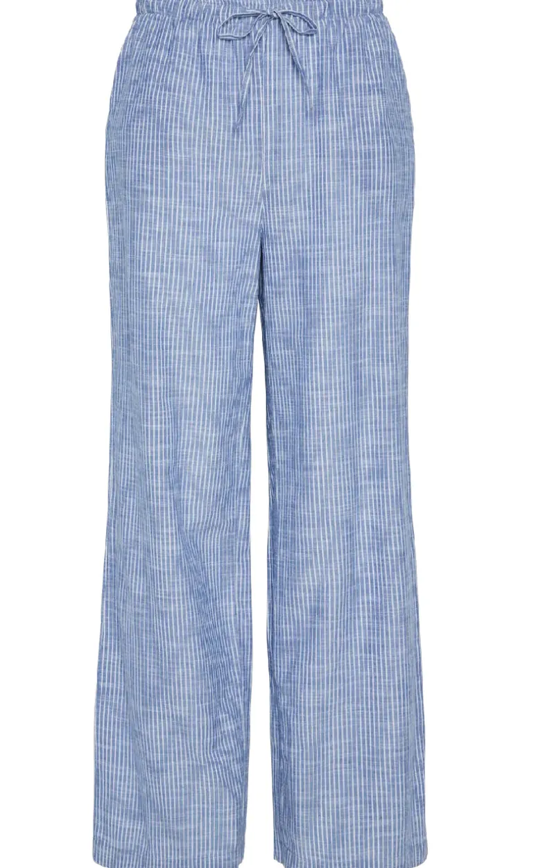 Lette og luftige bukser fra Pieces i et stribet print, med elastik og bindebånd i tajlen.