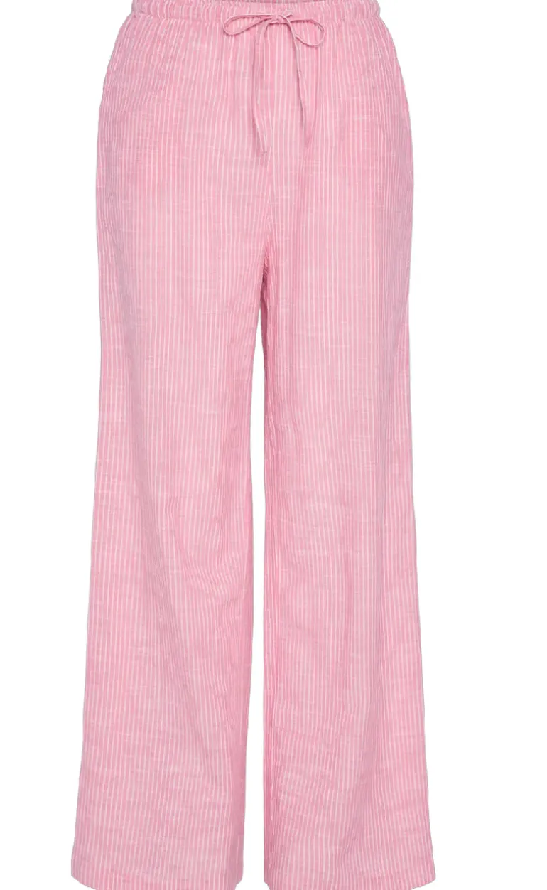 Lette og luftige bukser fra Pieces i et stribet print, med elastik og bindebånd i tajlen.