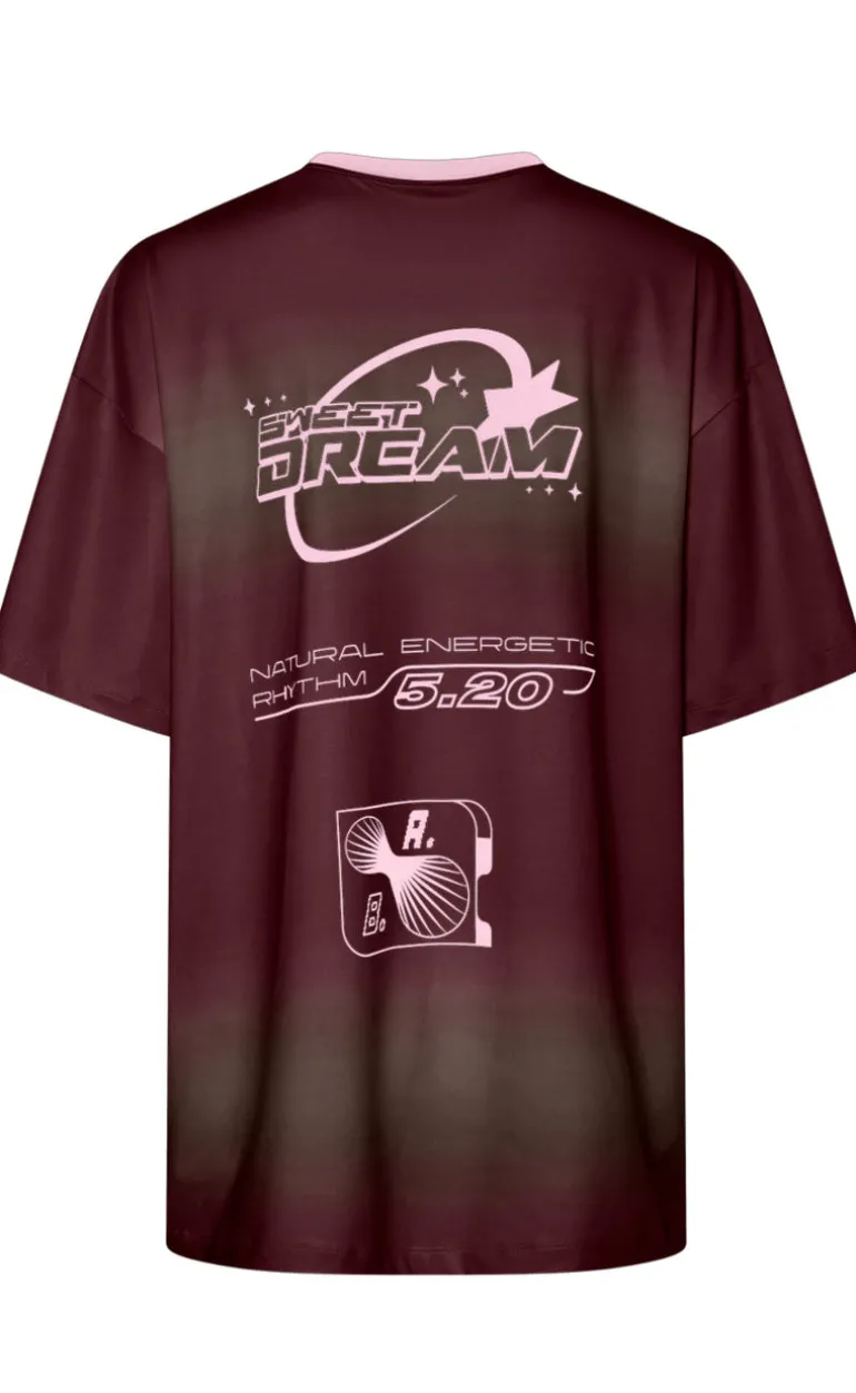 Flot t-shirt fra Pieces med et sporty look, i flotte lyserøde og vin røde farver.