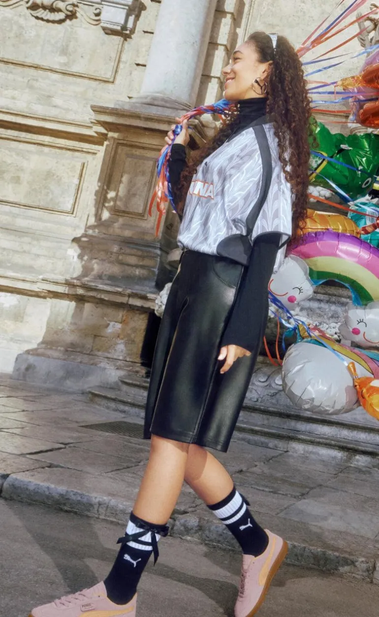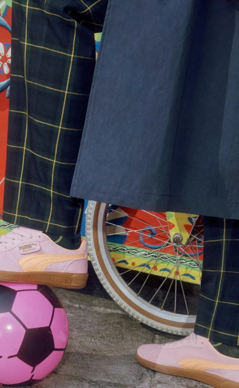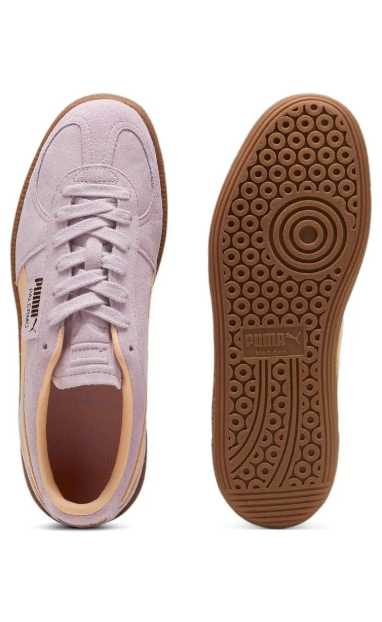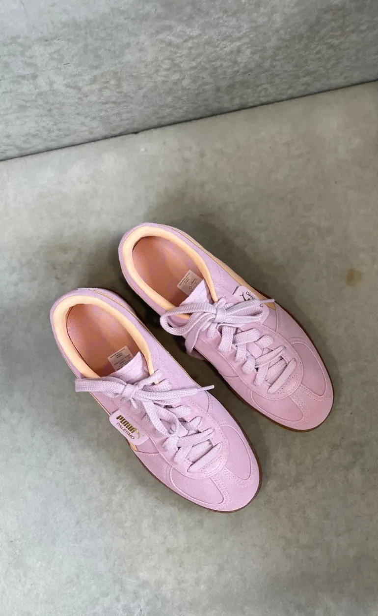 Moderne sneakers fra Puma i lyserøde med en fersken farvet stribe.