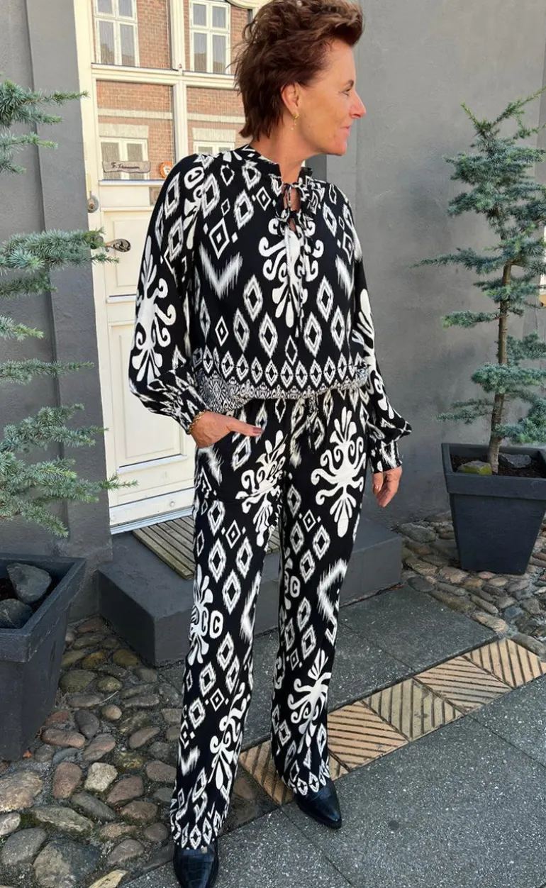 Blusen kan med fordel styles matchende INA Copenhagen Bukser – Tora – Black/White Paisley.