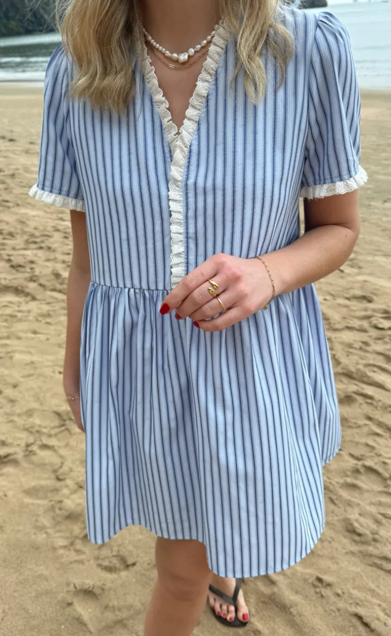 Den yndigste kjole fra INA Copenhagen i blå og hvid stribet print.