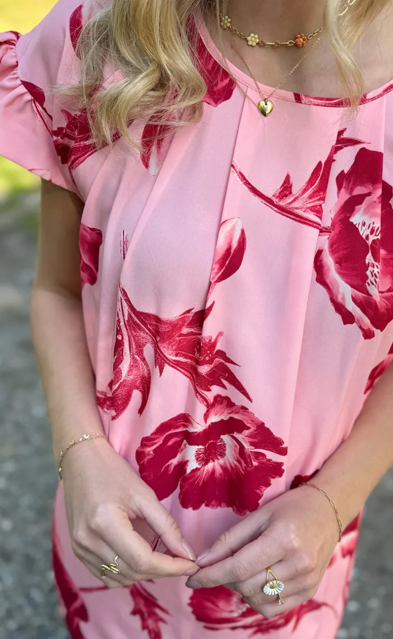 Smuk kjole fra Say INA i rosa med pinke blomster.