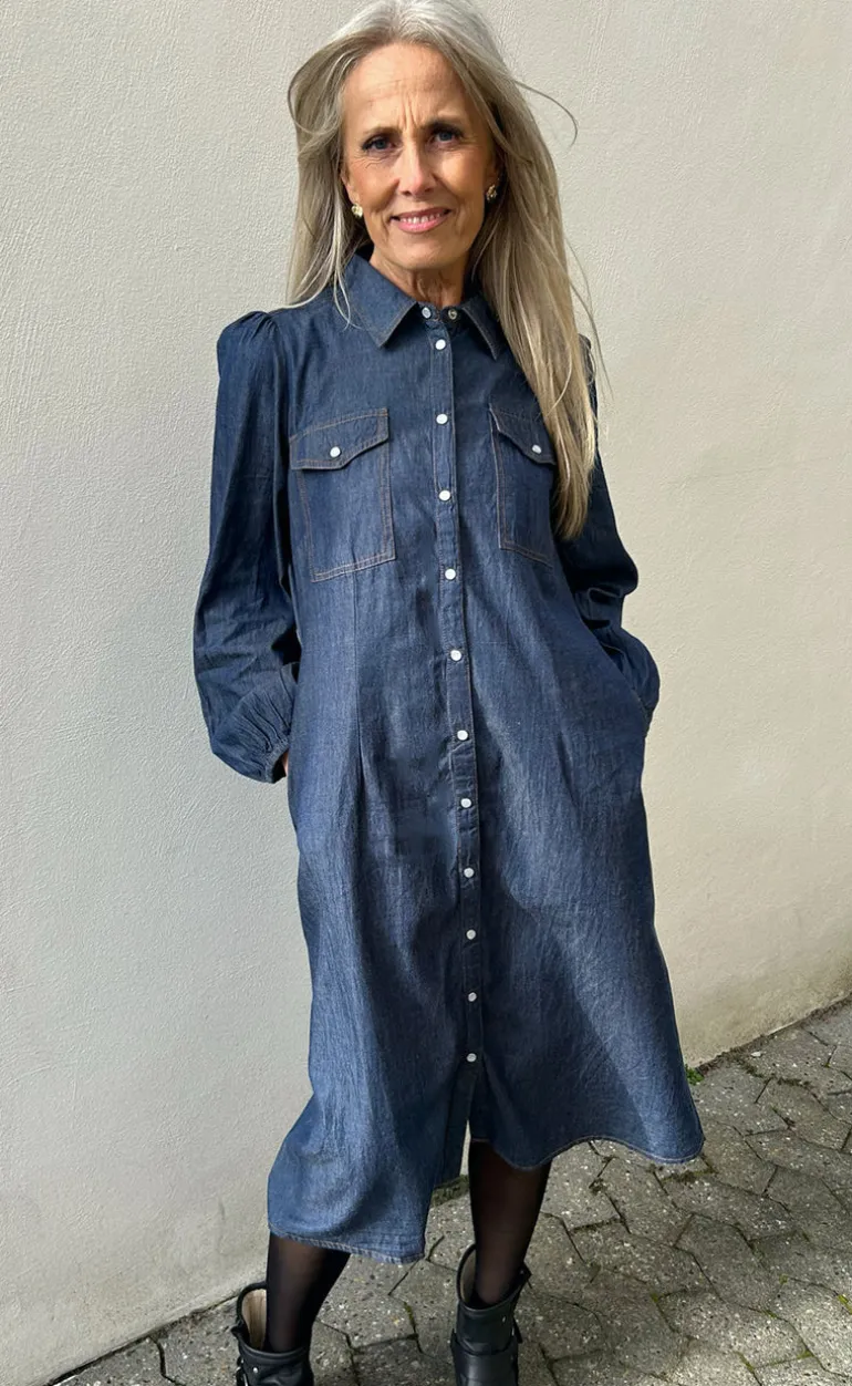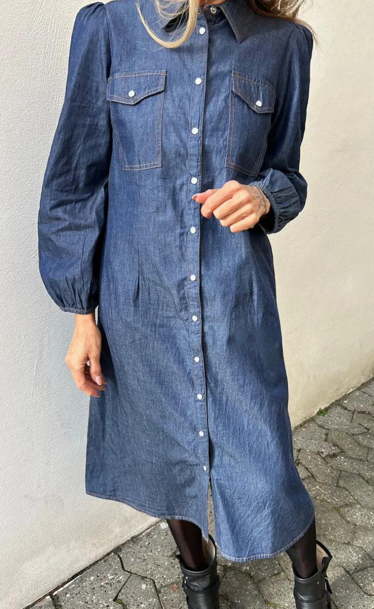 Flot kjole fra INA Copenhagen i en let denim kvalitet.
