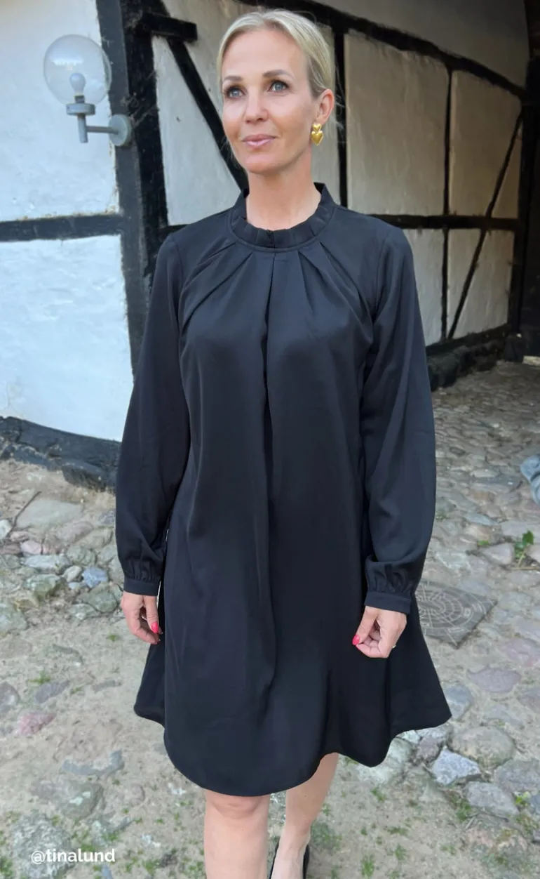 Smuk kjole fra INA Copenhagen i sort med de smukkeste detaljer ved halsen og fortil ved brystet.