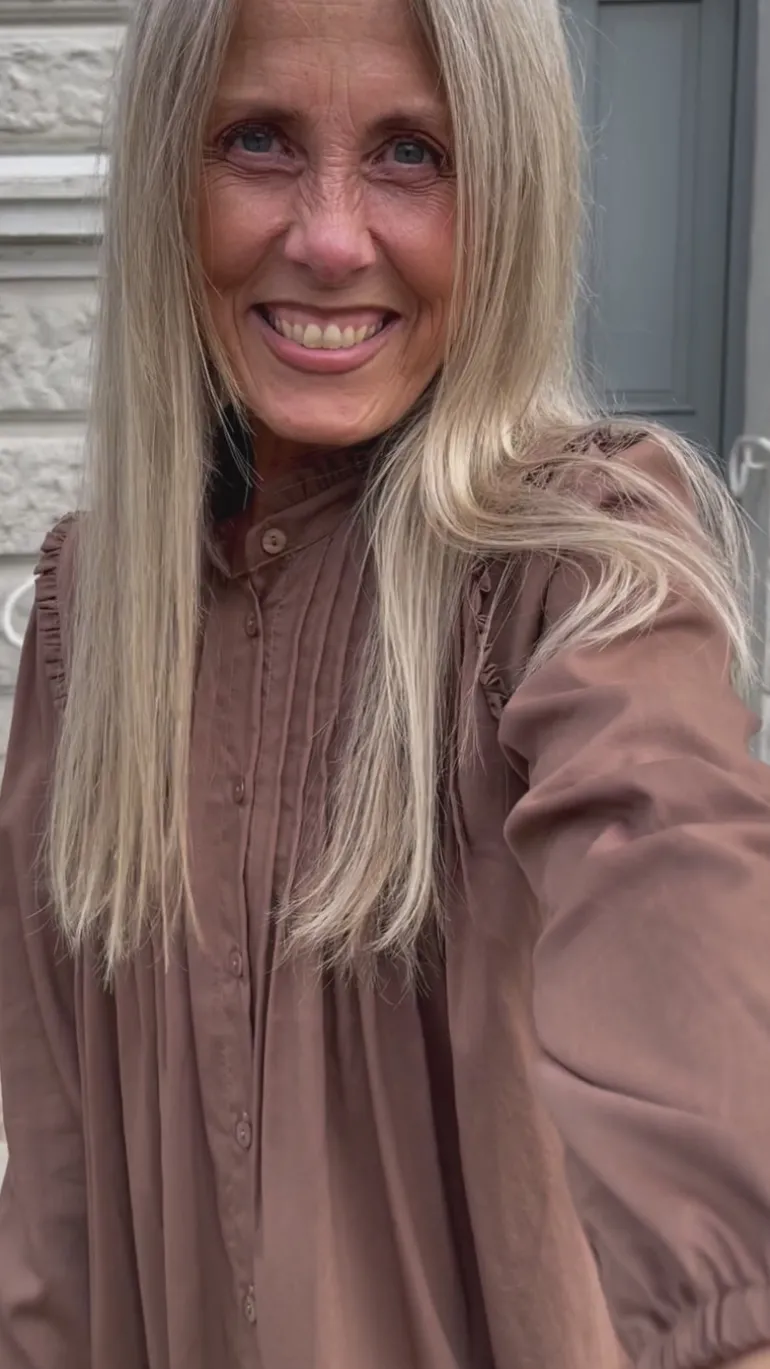 Flot skjortekjole fra INA Copenhagen i en brun nuance med de fineste detaljer.