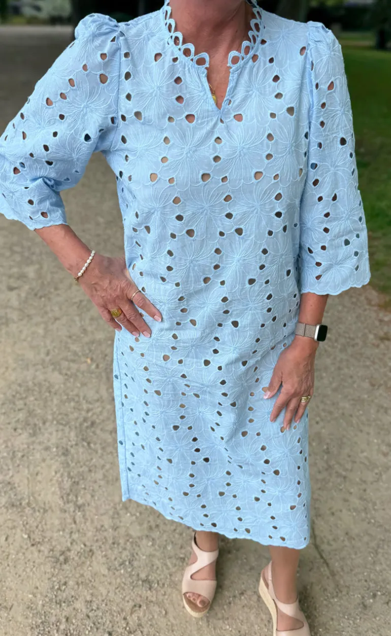 Den yndigste kjole fra INA Copenhagen i en blå blonde kvalitet.