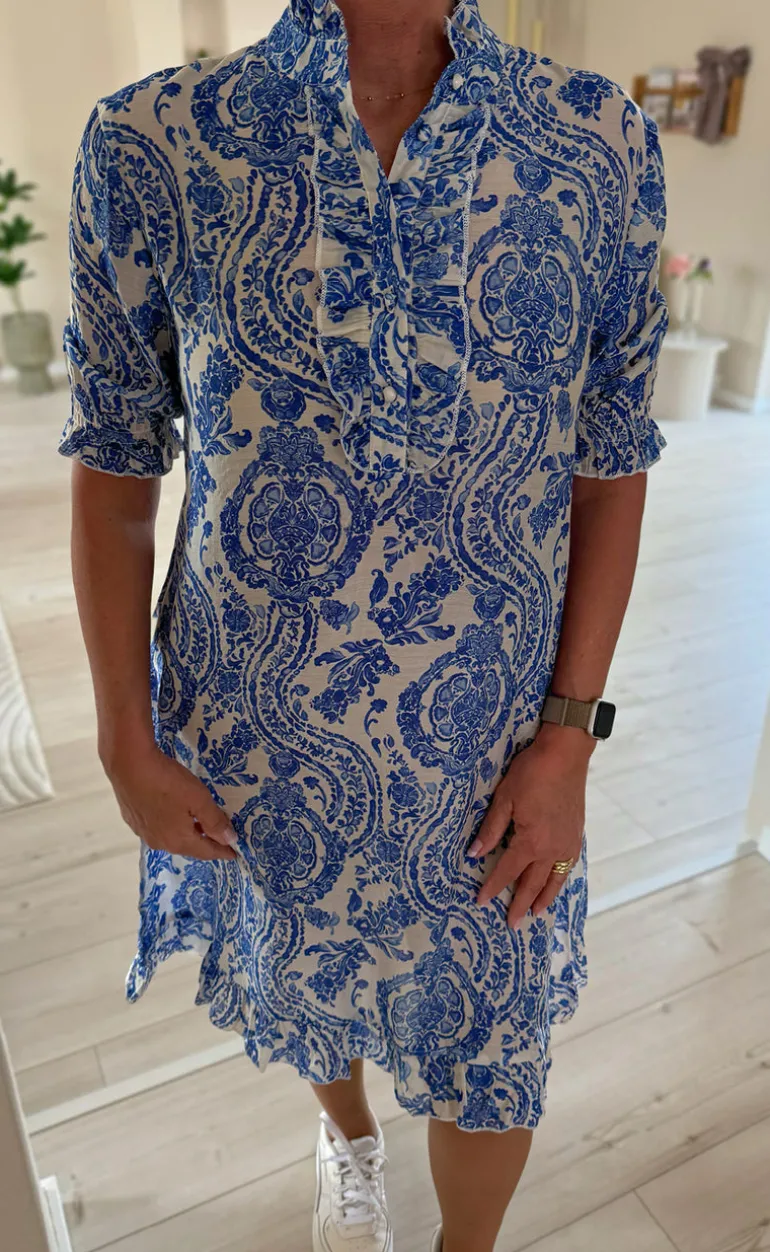 Flot kjole fra INA Copenhagen med paisley print i blå.