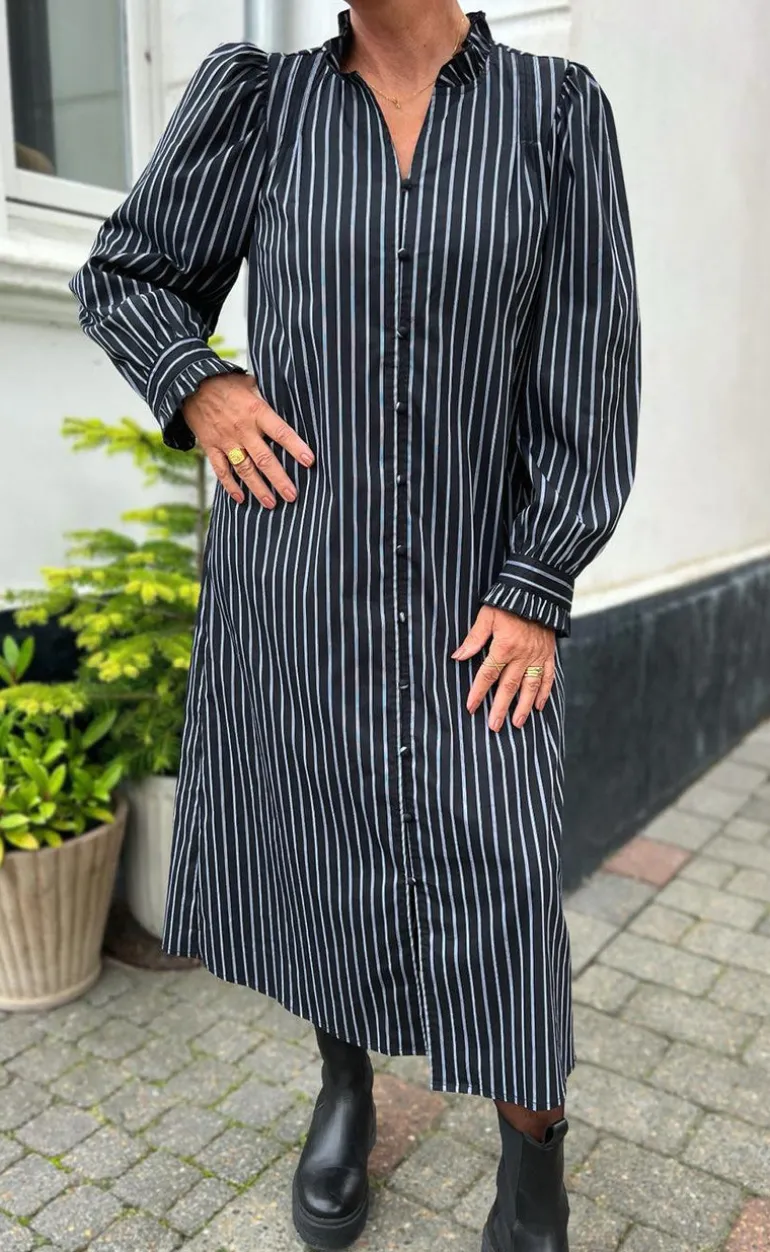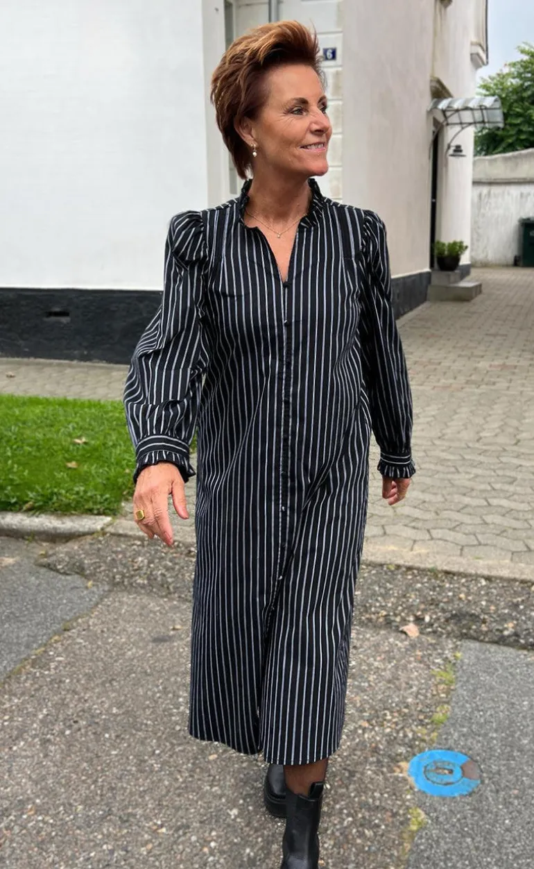 Smart skjortekjole fra INA Copenhagen med striber i sort og hvid.