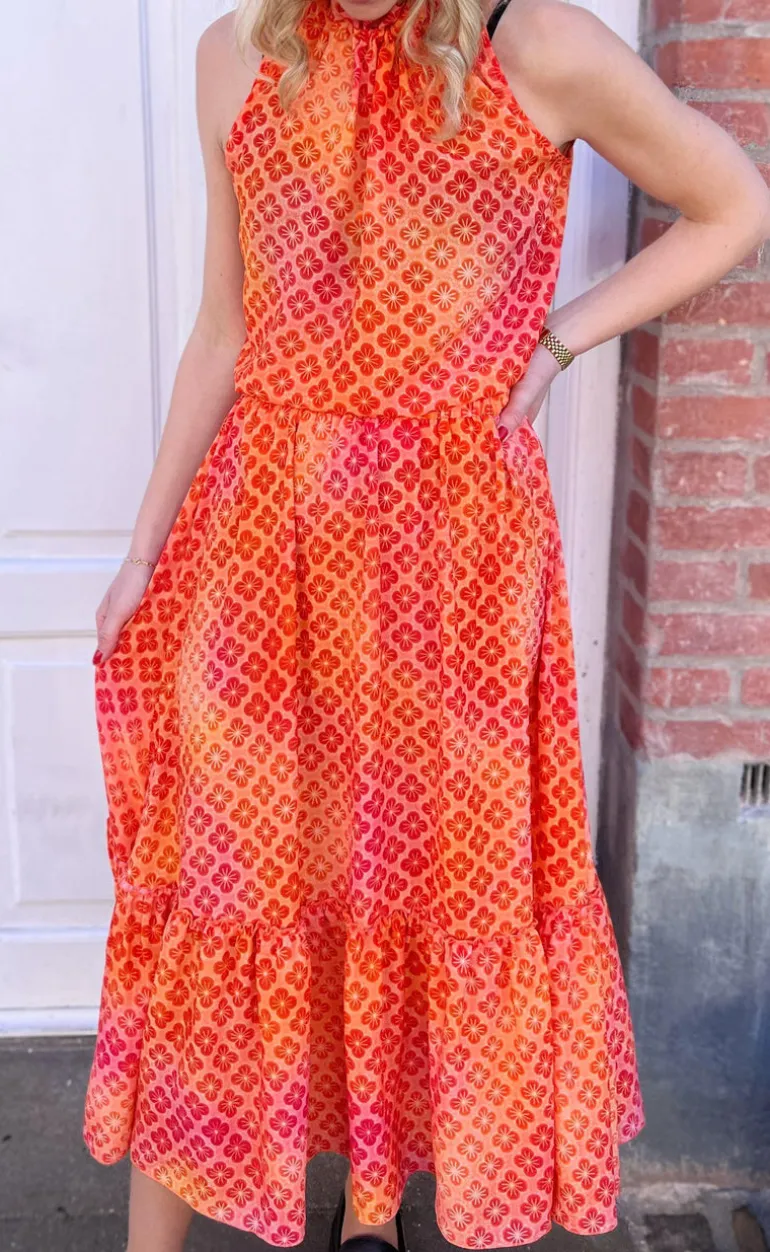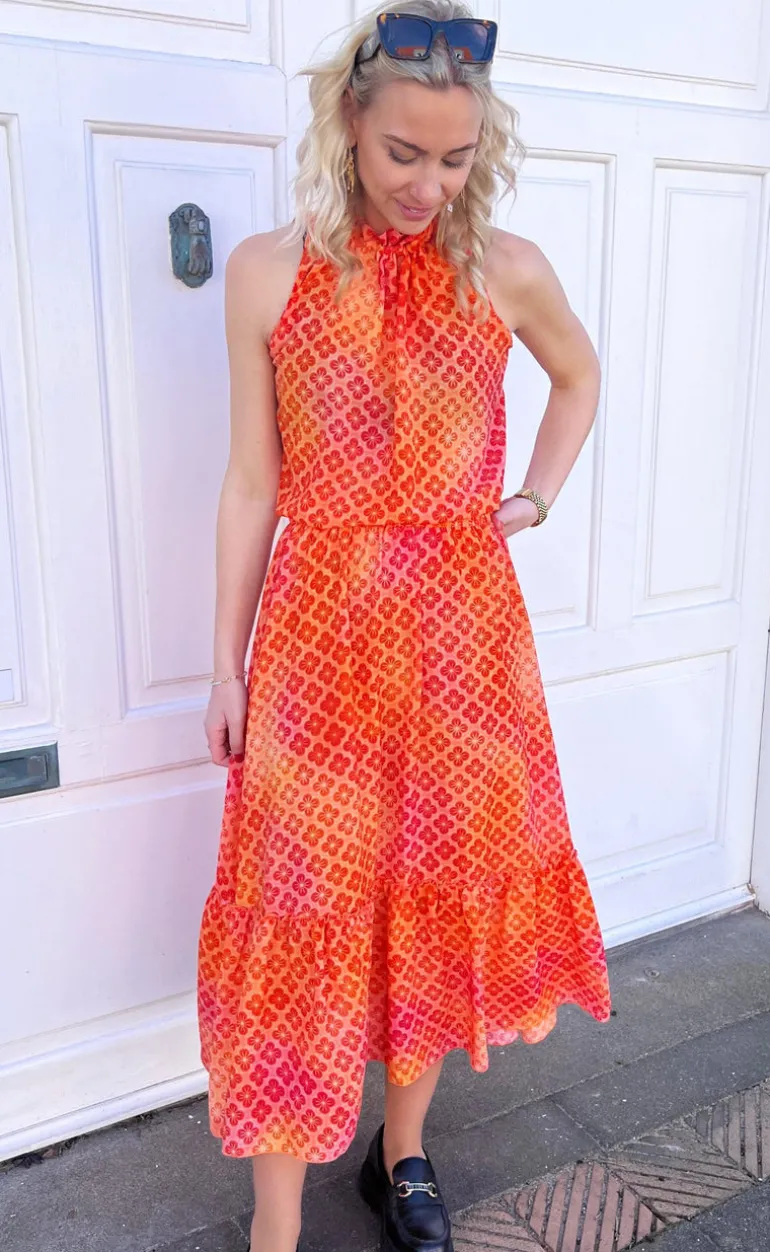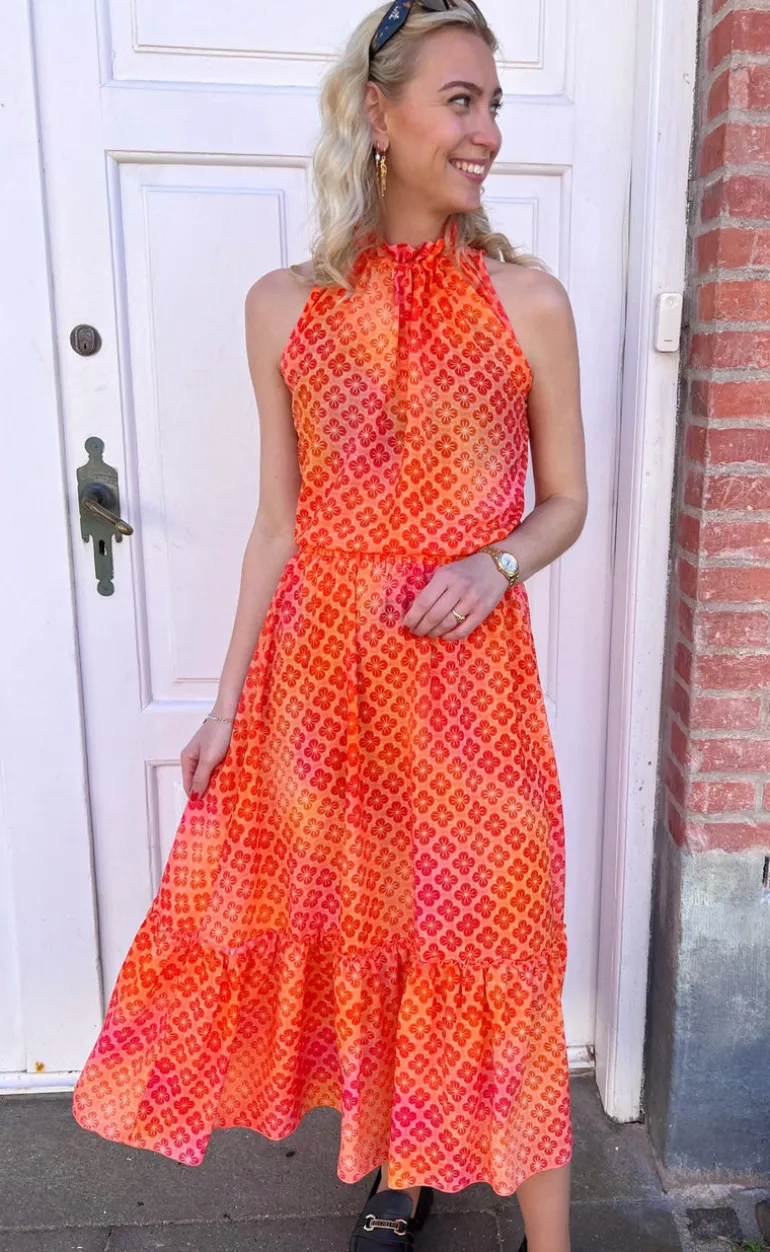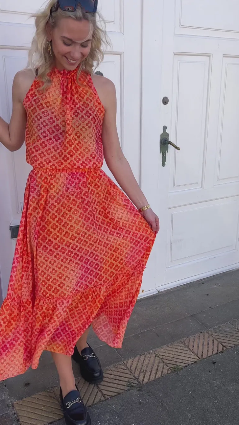 Elegant nederdel fra INA Copenhagen i et eksklusivt rødorange print.