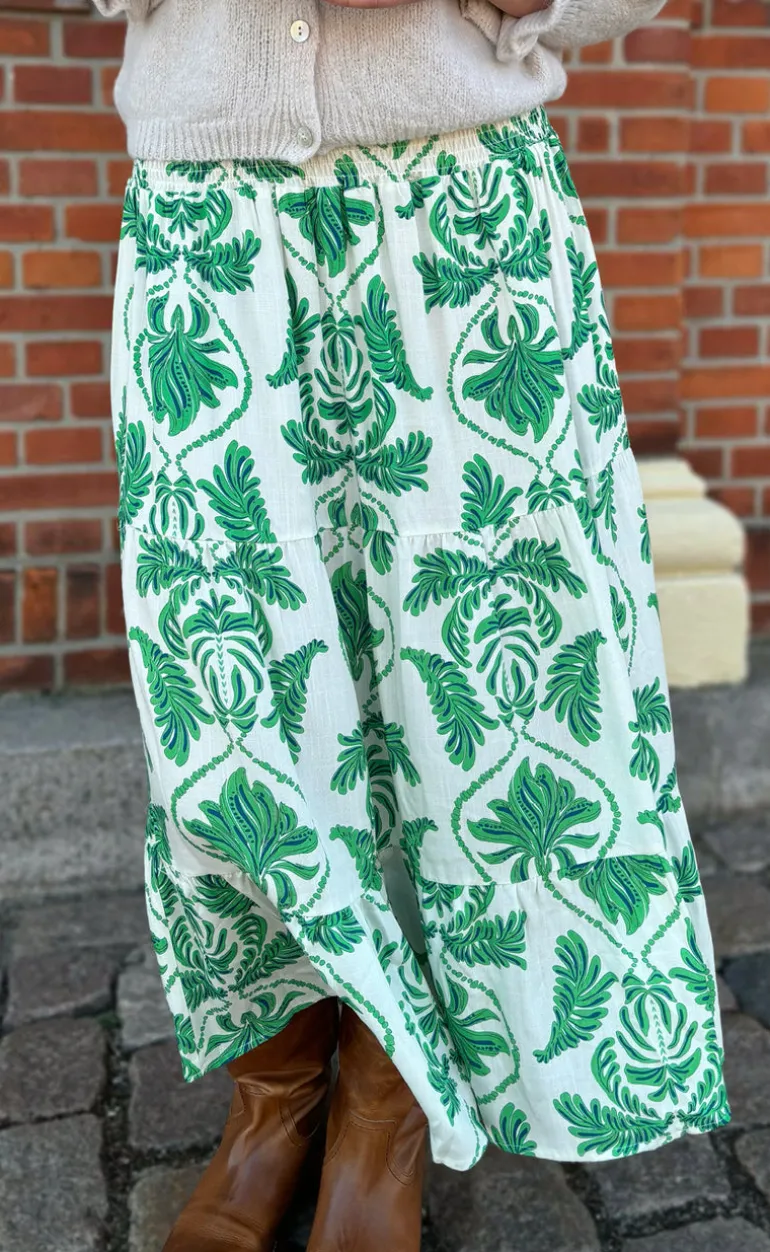 Den yndigste nederdel fra INA Copenhagen i et grønt og hvidt print.