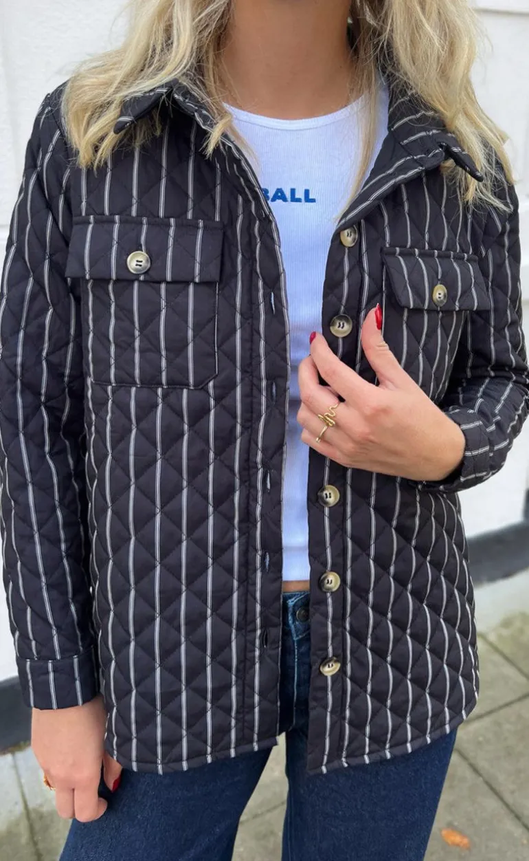 Smart jakke fra INA Copenhagen i sort med hvide striber.