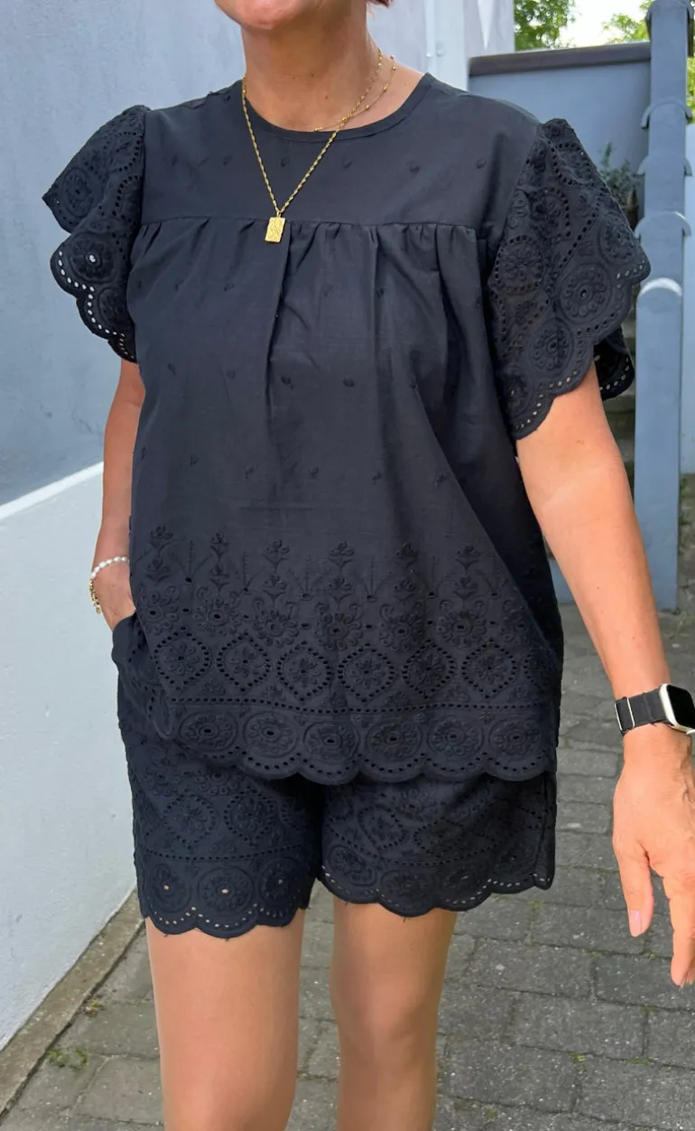 Flotte shorts fra INA Copenhagen i sort med broderi anglaise detalje nederest.