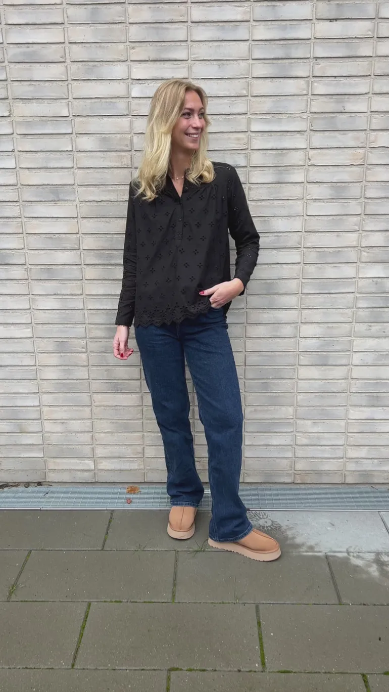 Skjorten har en stolpelukning fortil og har de fineste broderie anglaise detaljer. Skjorten er perfekt til enhver lejlighed!
