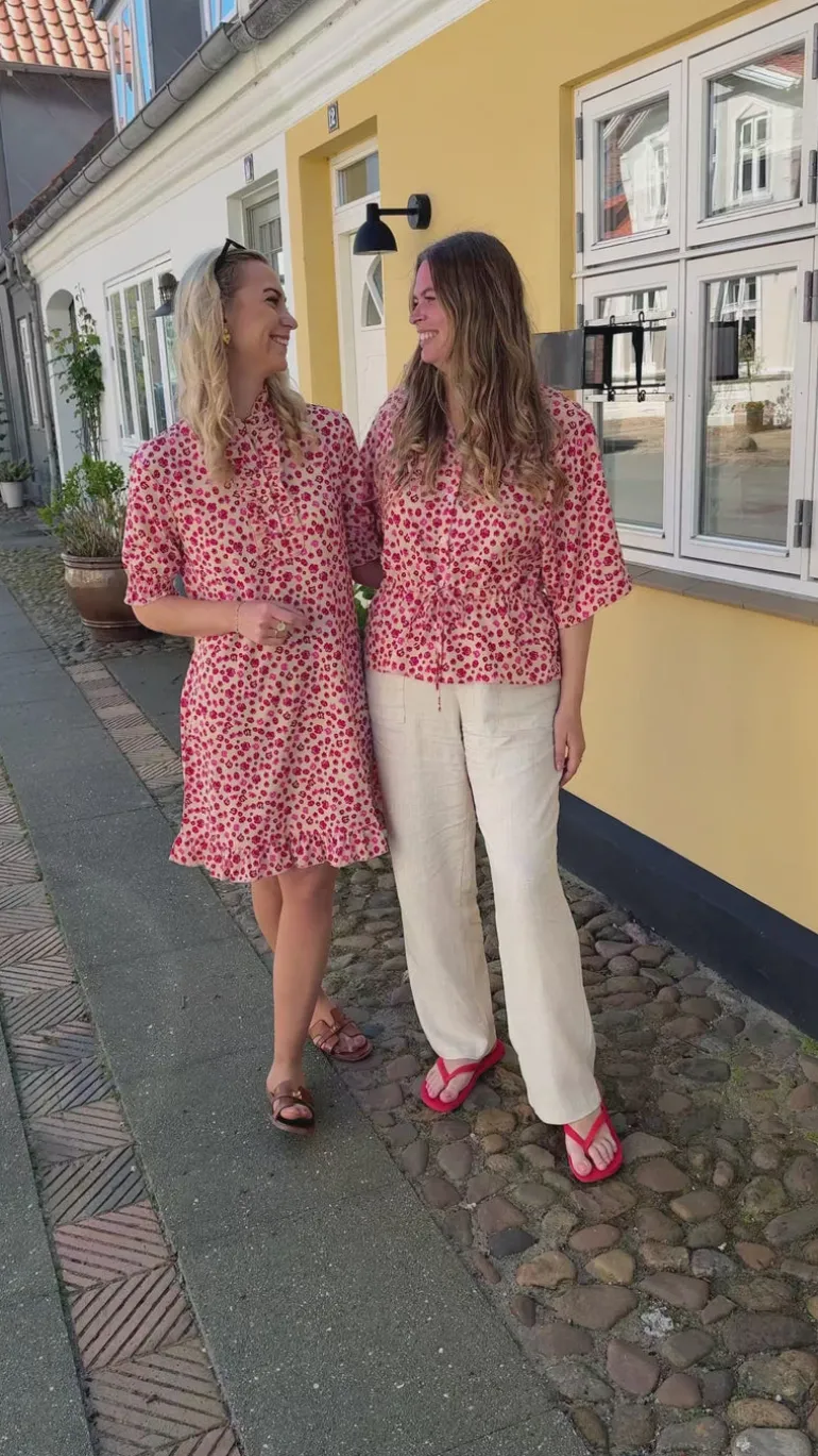 Den smukkeste skjorte fra INA Copenhagen med blomster print i pinke og røde nuancer.