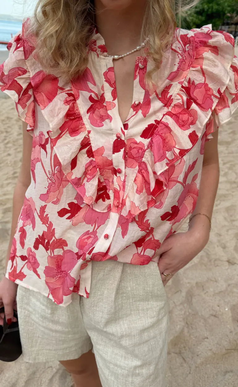 Den smukkeste top fra INA Copenhagen i et lyserødt print med blomster.