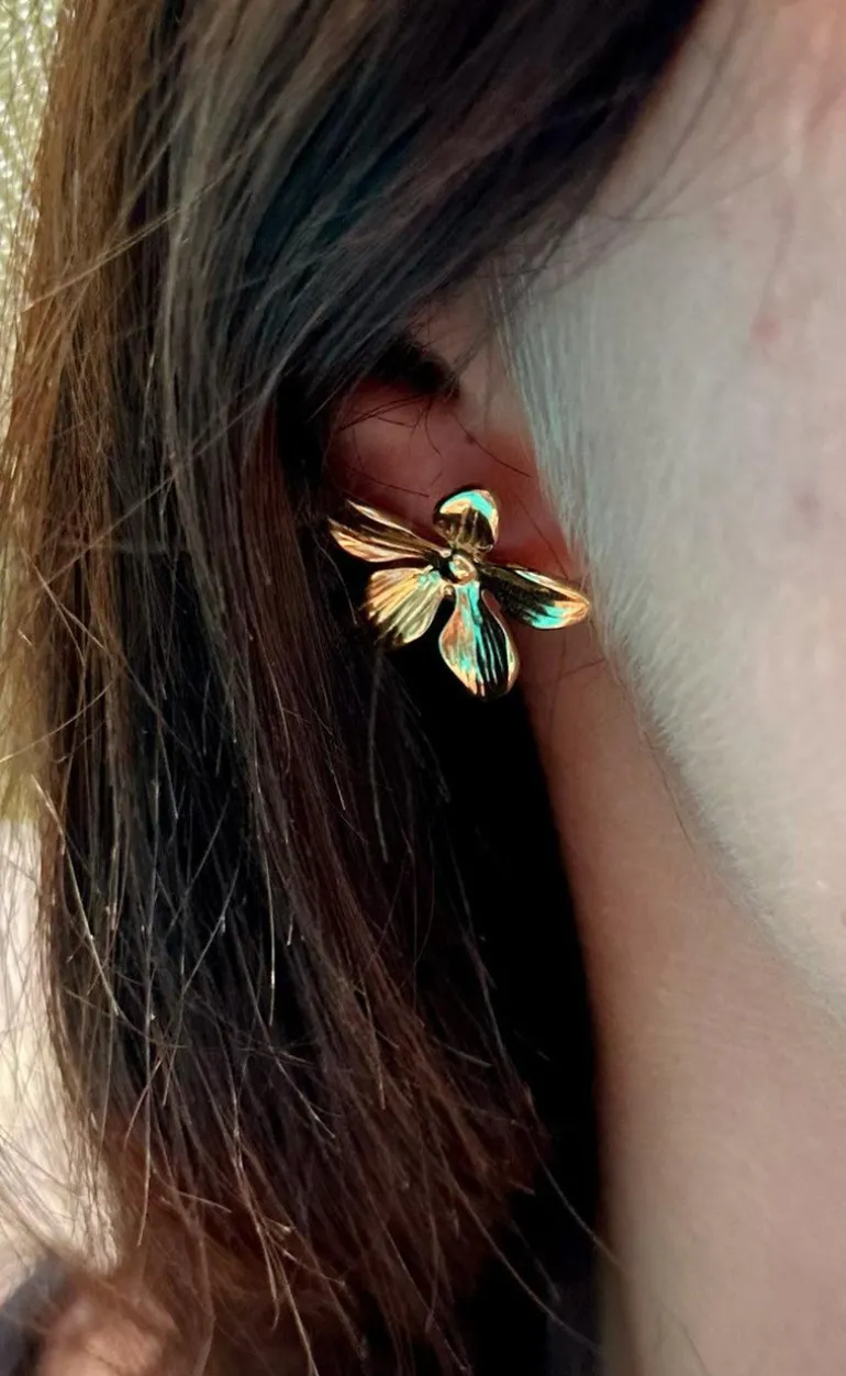 Fine blomster-øreringe fra Smykkeli Copenhagen i guld. Øreringene har et virkelig eksklusivt look og kan anvendes til enhver lejlighed.