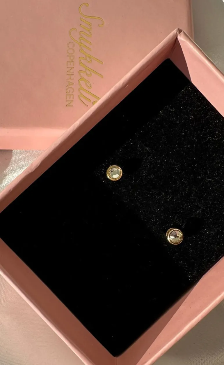 Fine studs fra Smykkeli Copenhagen i guld med en lille zirconia sten.
