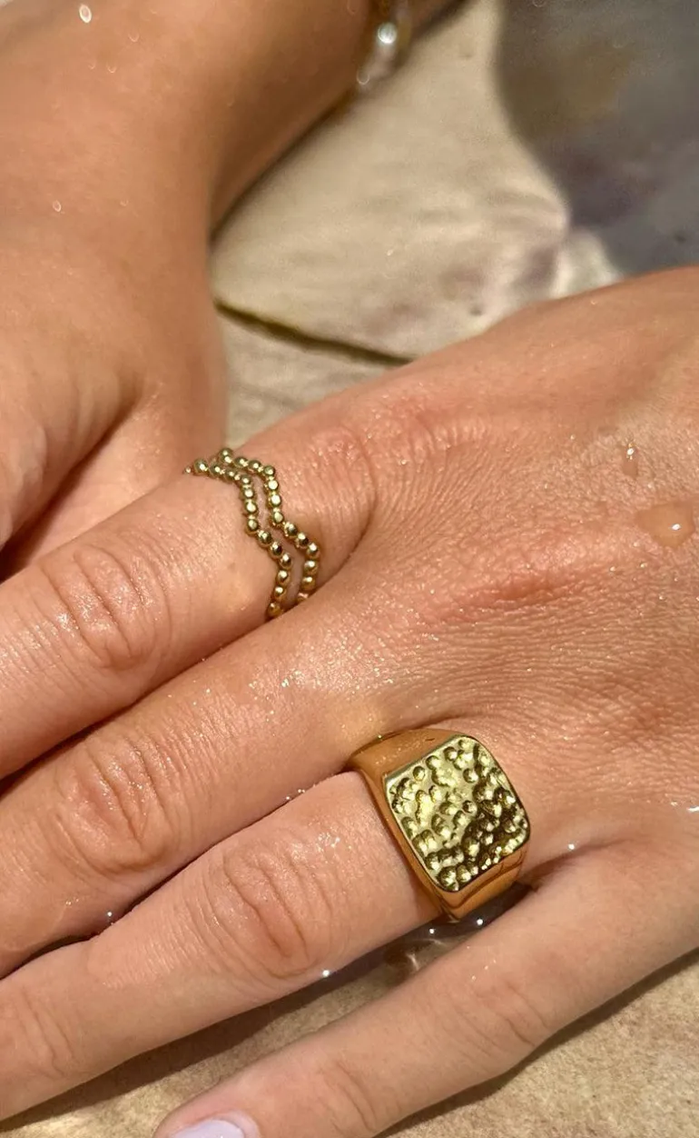 Flot ring fra Smykkeli Copenhagen i guld med to zigzag rækker med et bobble-design.