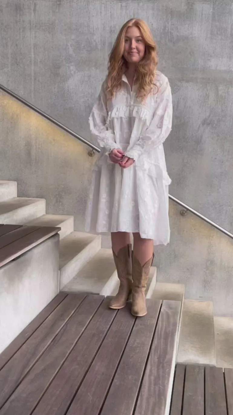 Denne hvide bomuldskjole er både sød og behagelig.
