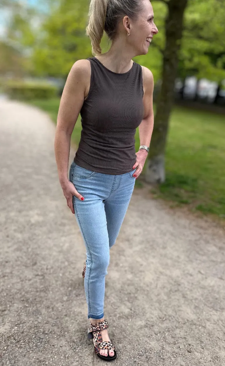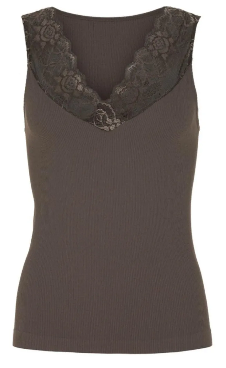 Toppen har en smuk blonde V-udskæring. Toppen er vendbar, så man selv vælger om man ønsker blonde-kanten foran eller bagtil.