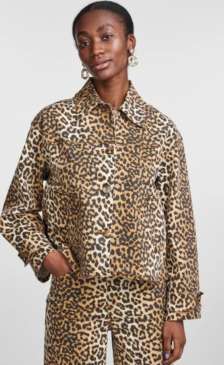 Cool denimjakke fra YAS i det moderne leoprint.