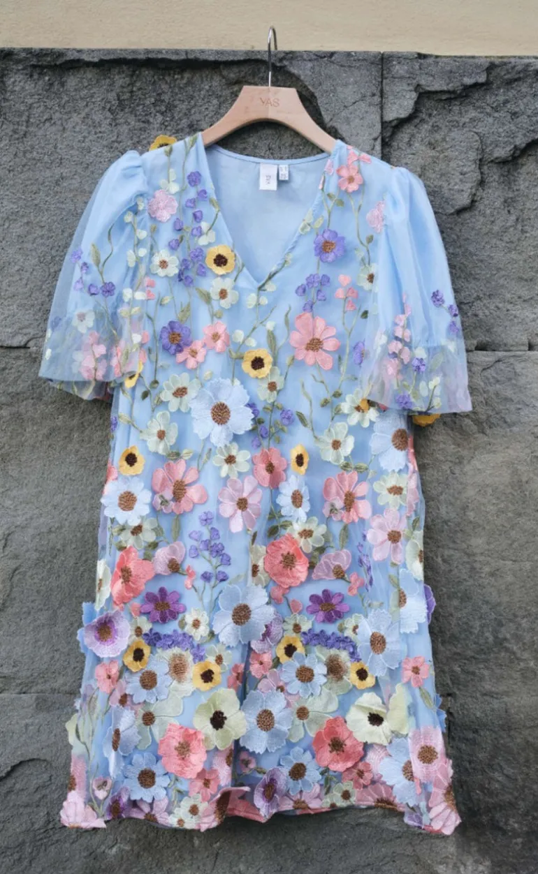 Kjolen har fine 3d blomster som giver et fint præg af forår.