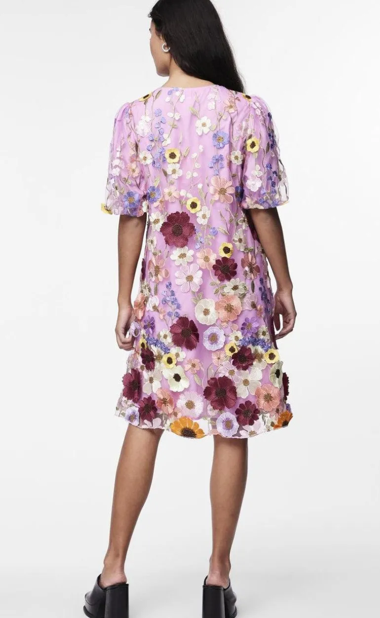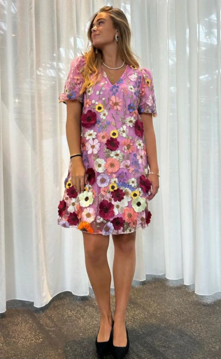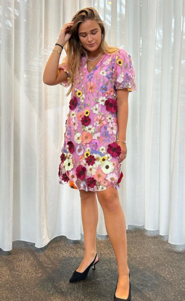 Kjolen har fine 3d blomster som giver et fint præg af forår.
