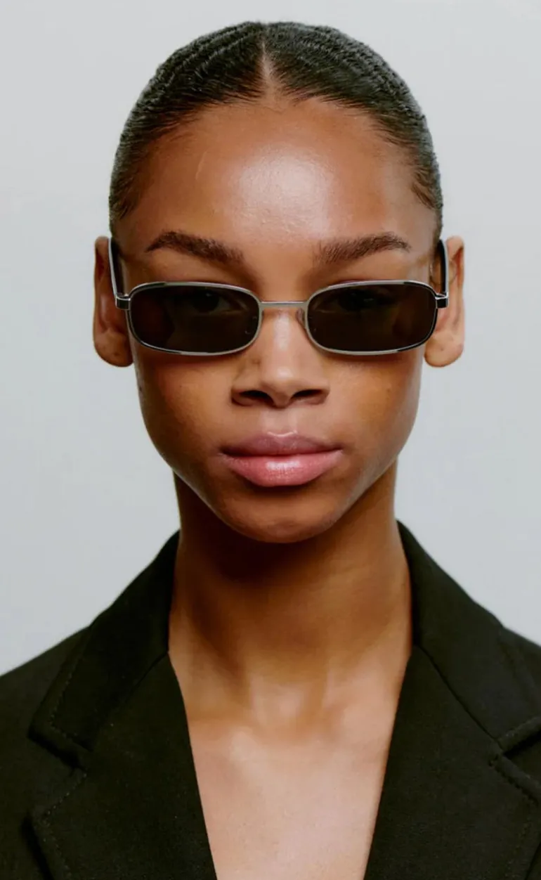 Seje solbriller i sølv med sort glas.