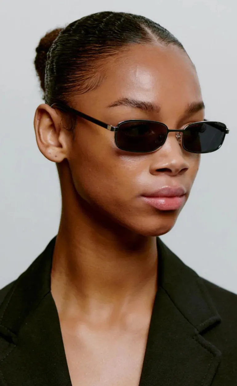 Disse solbriller har et tyndt stel og firkantet glas, og er perfekte til at pifte et outfit op!