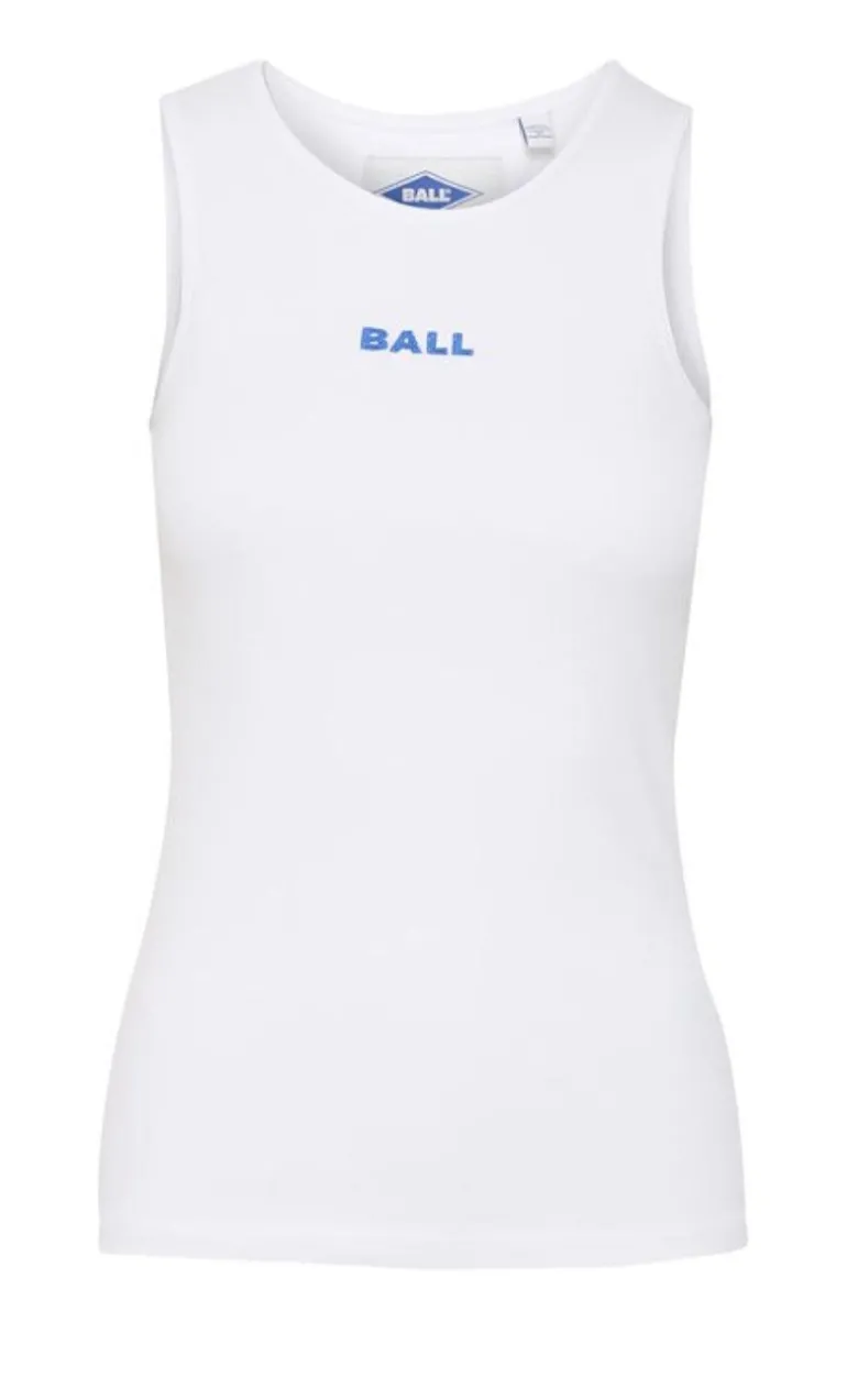 Den fineste top fra Ball Original kommer i hvid, i en ribbet kvalitet. Har “BALL” stående fortil i en blå nuance. Den er ærmeløs og har et tætsiddende fit.