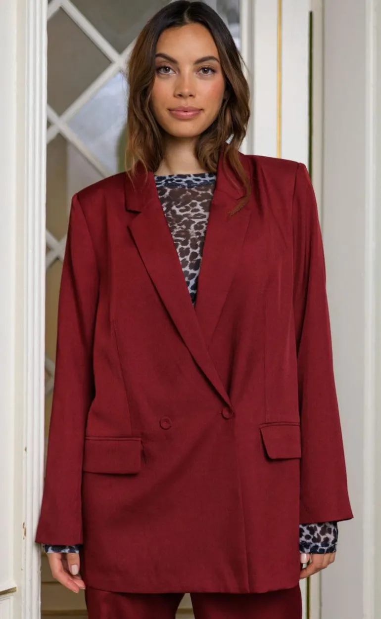 Oversize blazer fra Black Colour i vin rød.