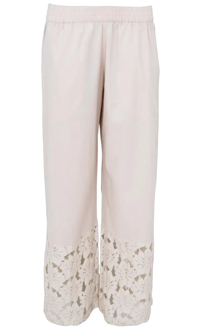 Bukser fra Black Colour i en lys farve, med blondemønster forneden.
