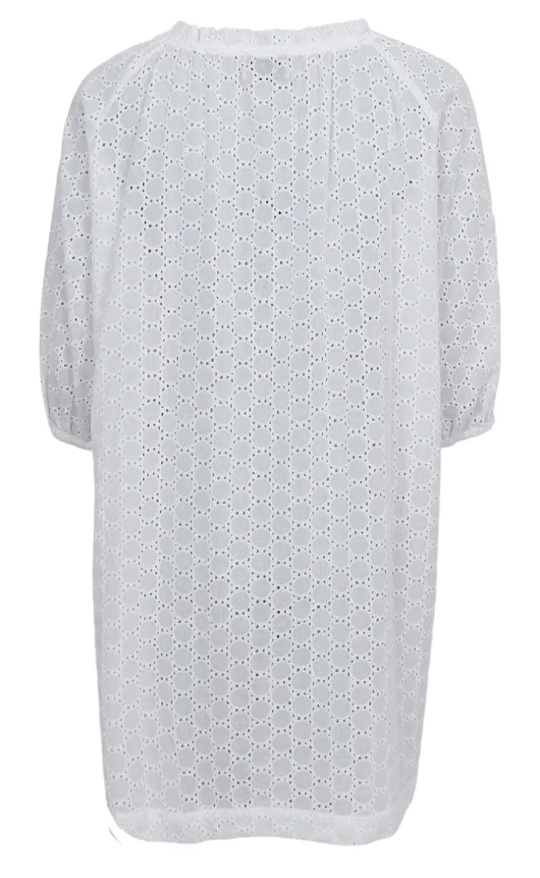 Feminin mini kjole fra Black Colour i et hvidt broderi anglaise print.